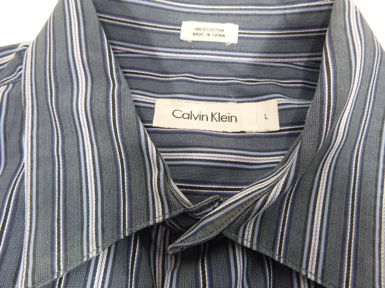 как выглядит Calvin Klein-Mens Dress Shirt-Large-Blue Stripes-Long Sleeve-Button Down-Classic фото