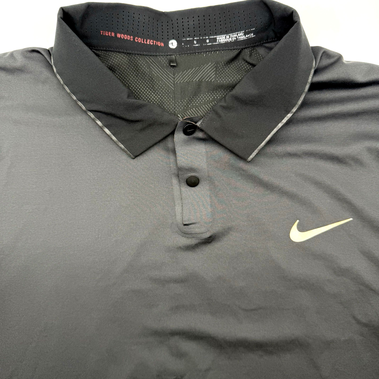 Nike Tiger Woods Collection L Short Sleeve Black Dri Fit Golf Polo Shirt