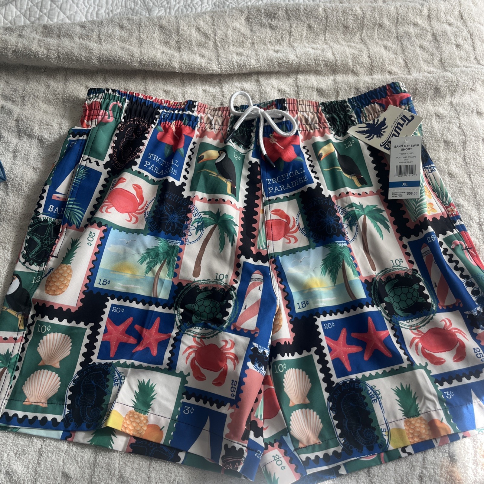 Trunks Surf Swim Co. Men's 6 Sano Swim Shorts XL Tiki Picnic Blue NWT