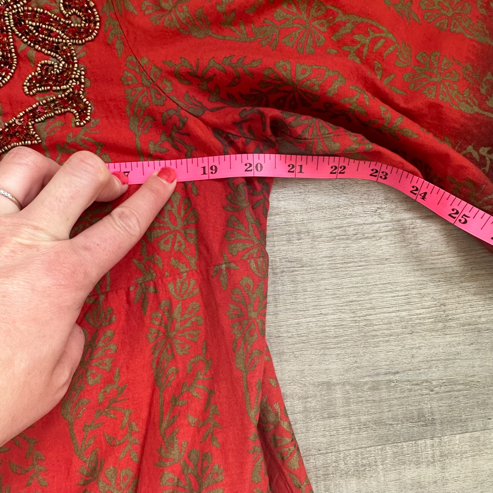 как выглядит Indian Tunic in Red-Orange and Brown with Intricate Beaded Neckline фото