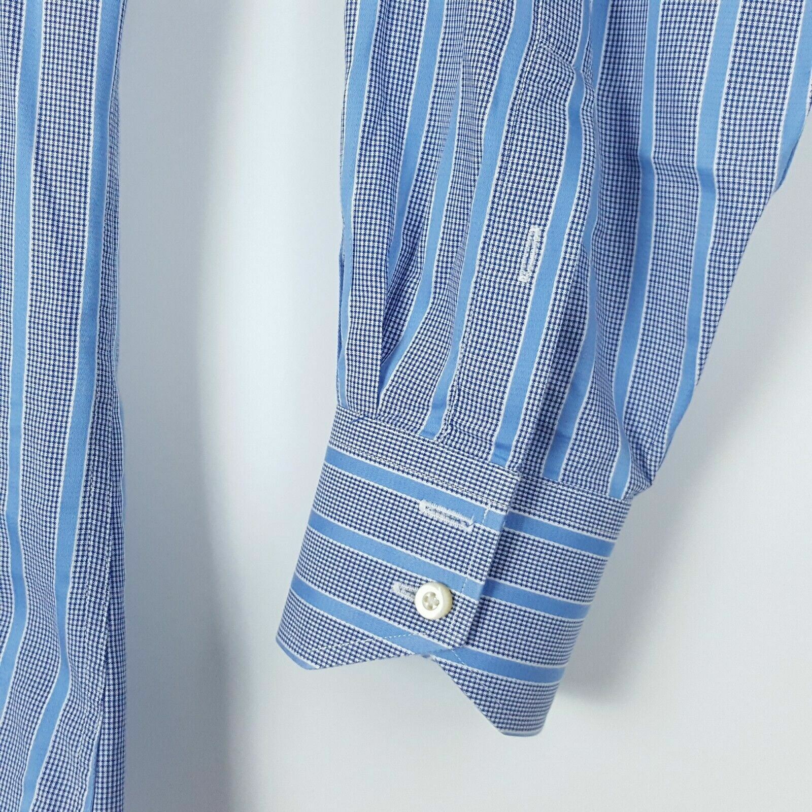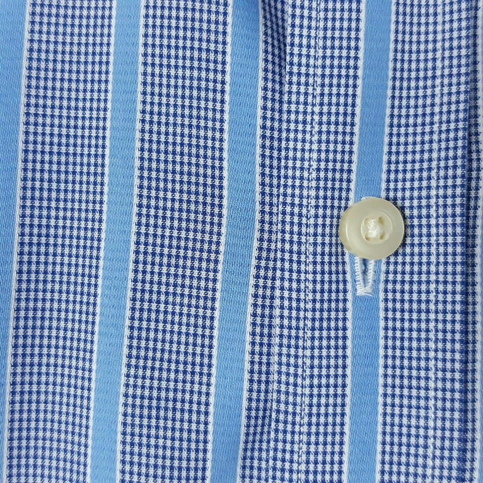 как выглядит Jack Stone By Thomas Dean Mens L Blue Mini Checks, Striped Long Sleeve Shirt фото