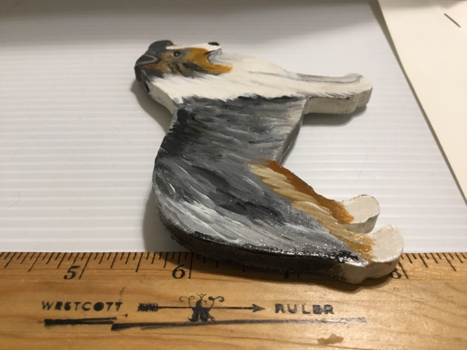 как выглядит Handmade Wooden Handpainted Doublesided BLUE MERLE COLLIE Plaque/Ornament/Magnet фото