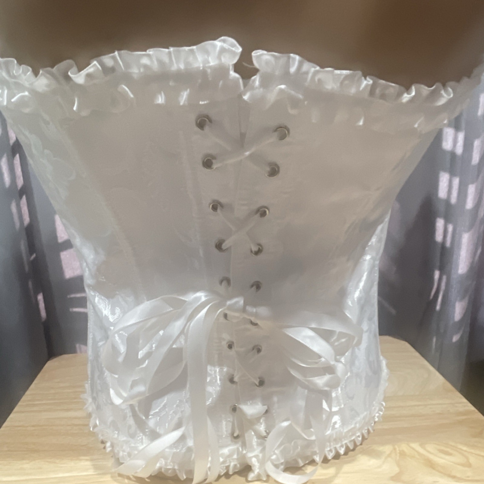 как выглядит White Jacquard Floral Overbust Corset Strapless Lace-Up Ruffle Trim Boned фото