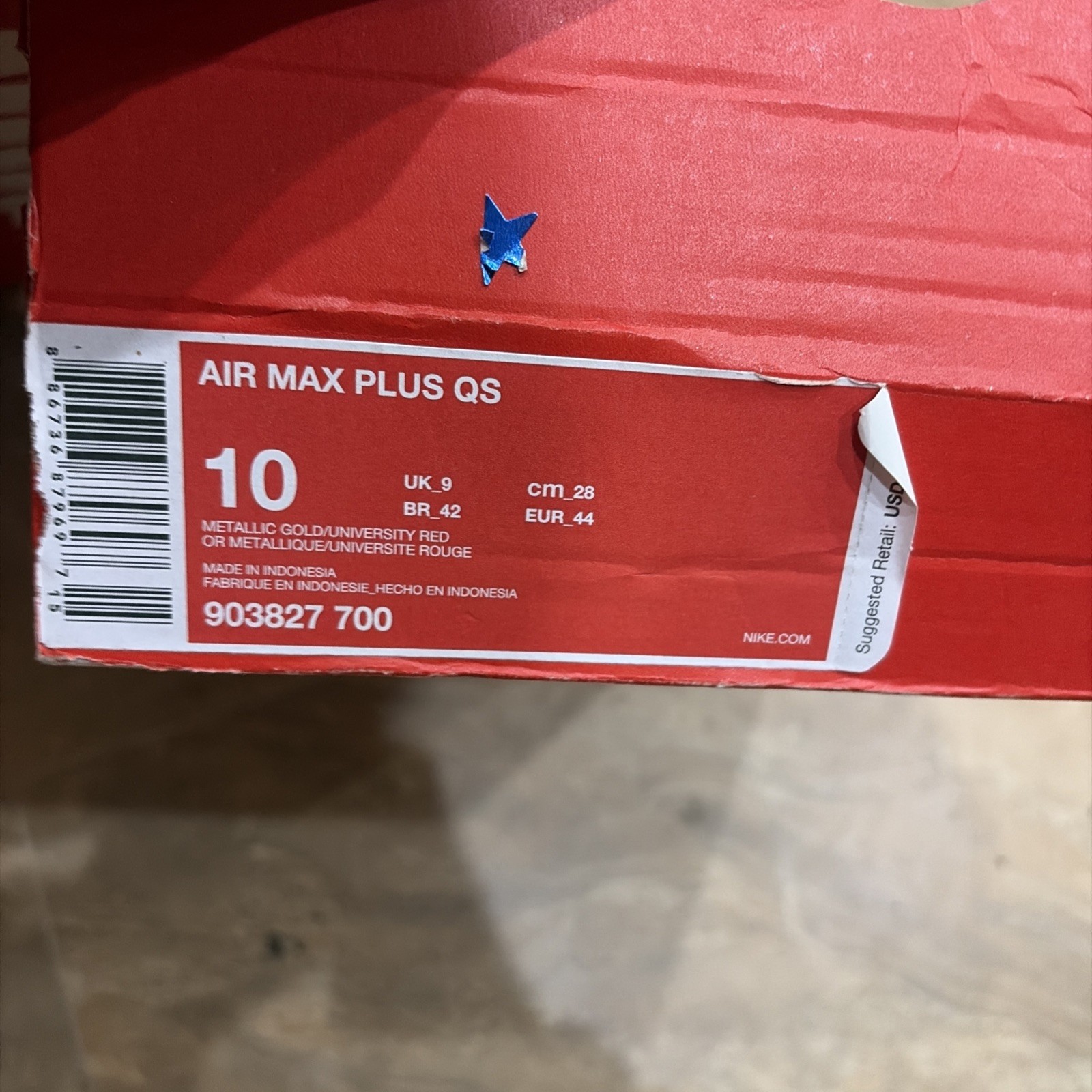 Nike Air Max Plus Metallic Gold 2018, Size 10 Men s With Box 903827-700