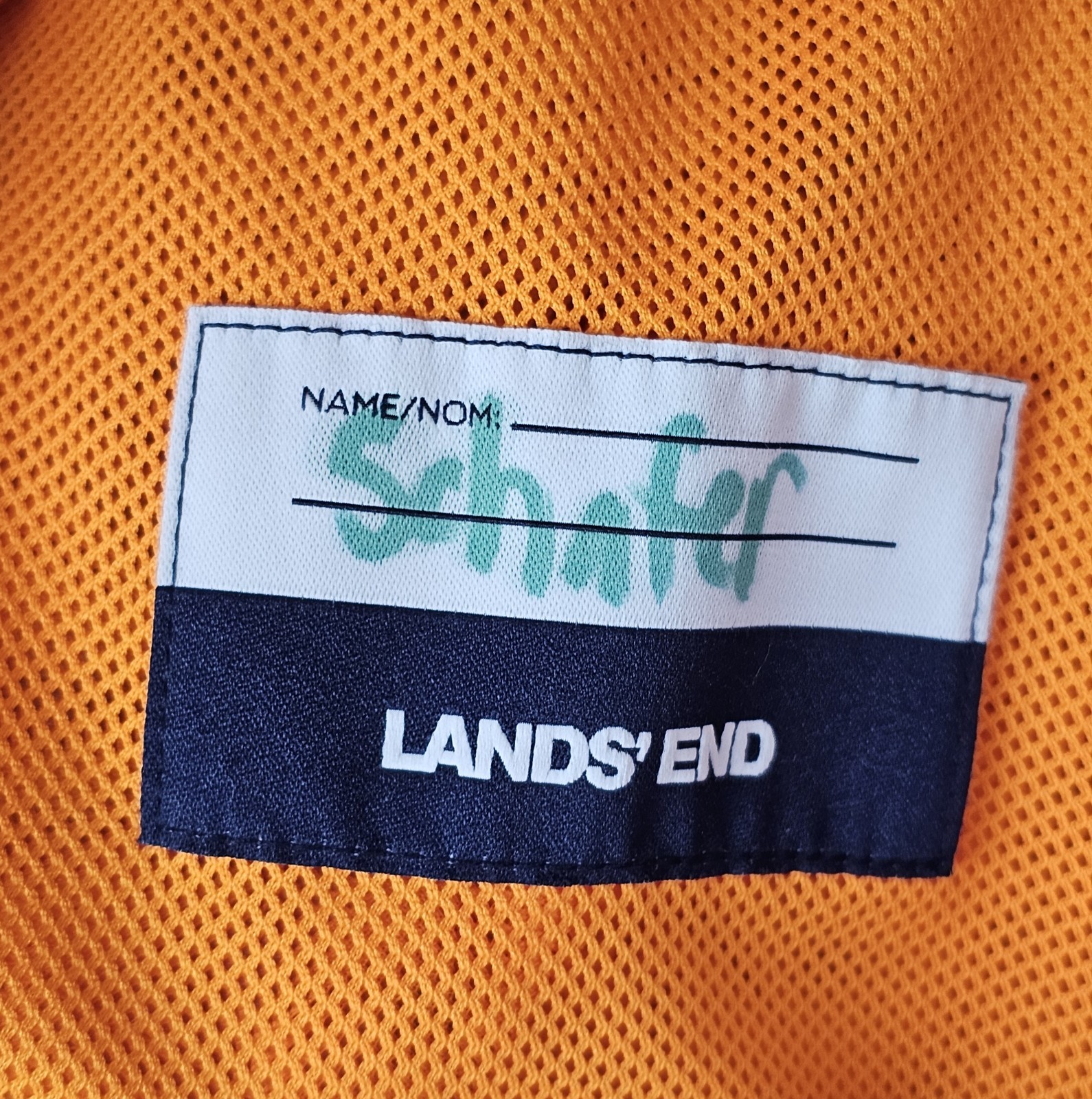 Lands End Kids Sz L Striped Jacket Wind Breaker Full Zip Hooded Packable Orange