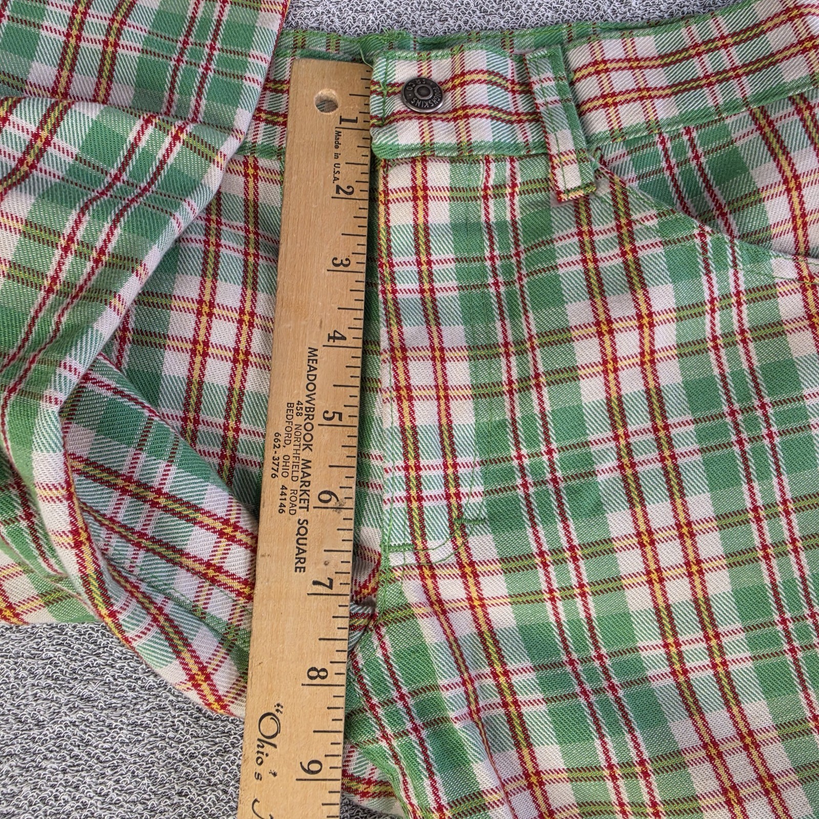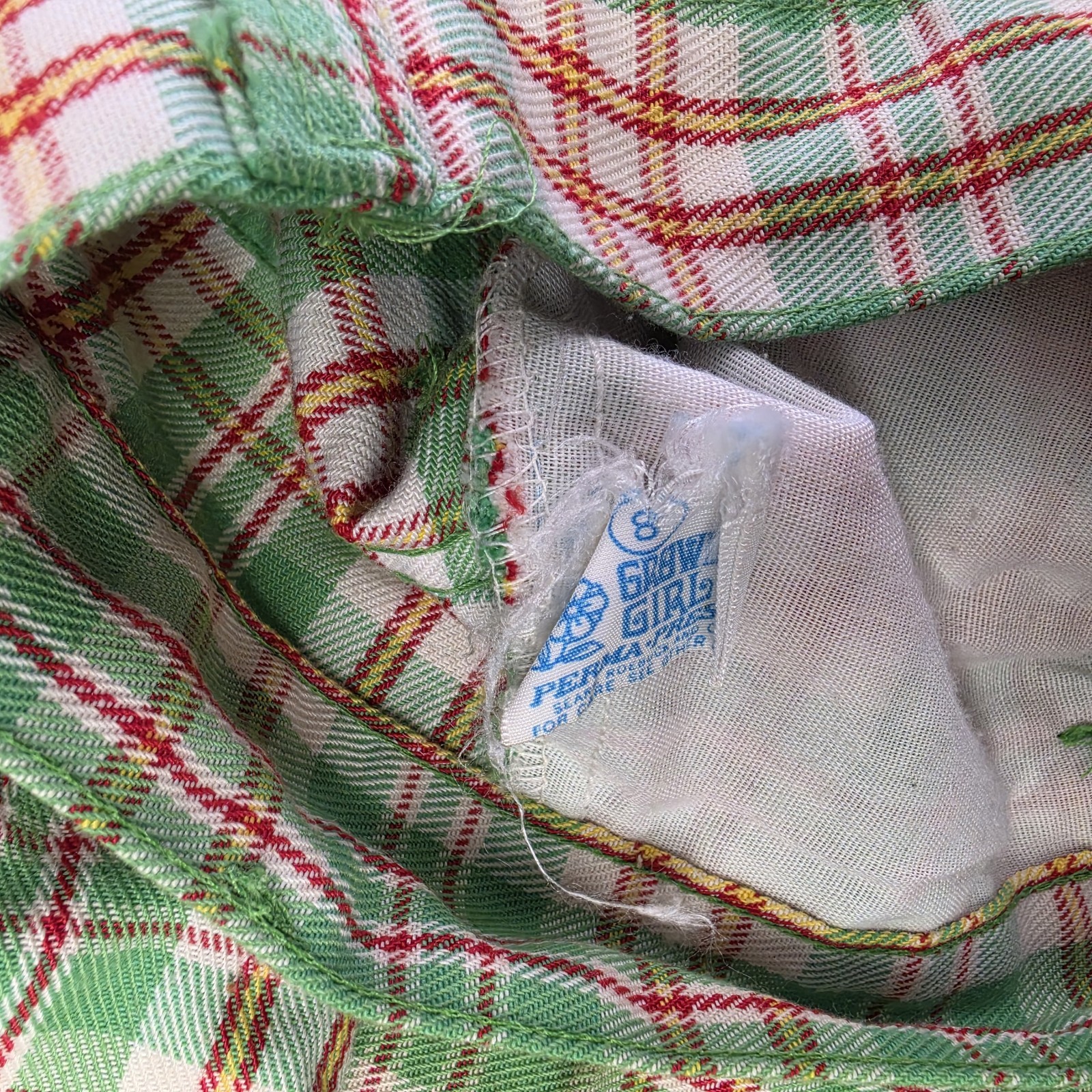 Vintage Sears Toughskins Plaid Pants 70s Growing Girl Size 8 Green Perma Prest