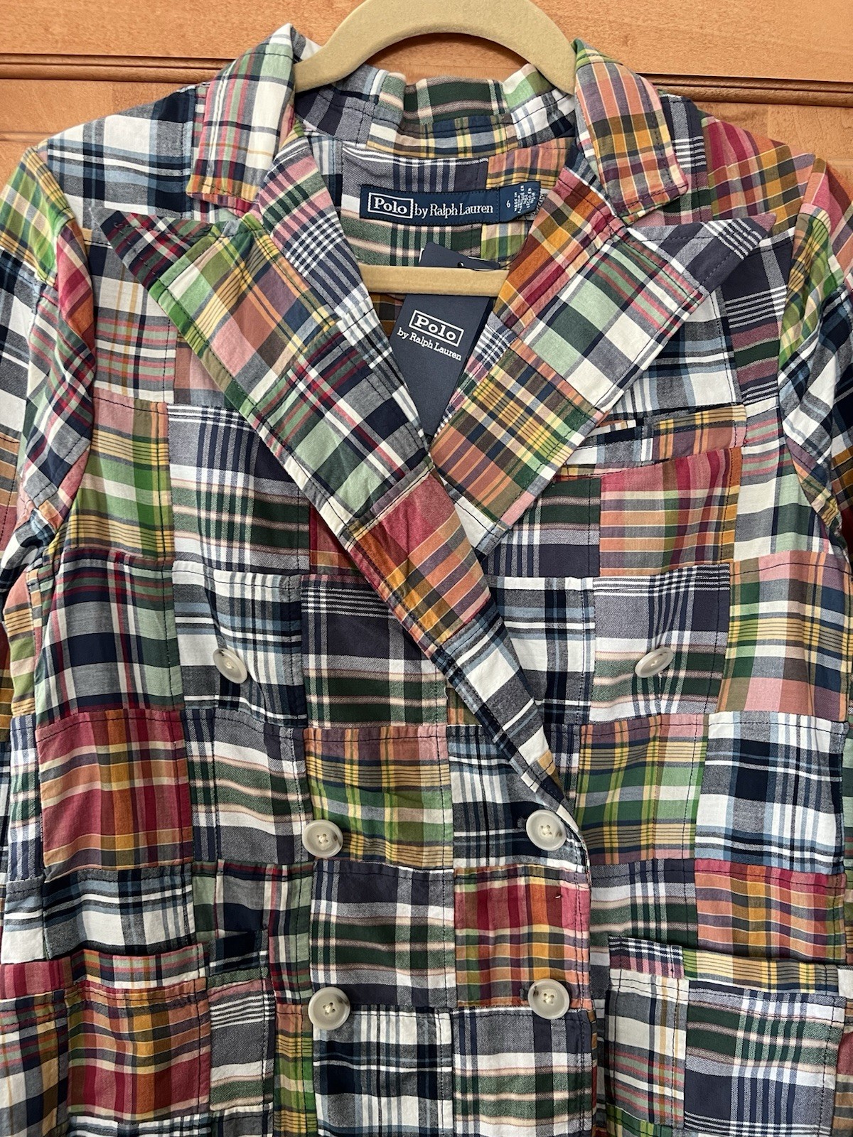 798 RALPH LAUREN Madras Plaid Women s Double Breasted Blazer - Size 6 - NWT