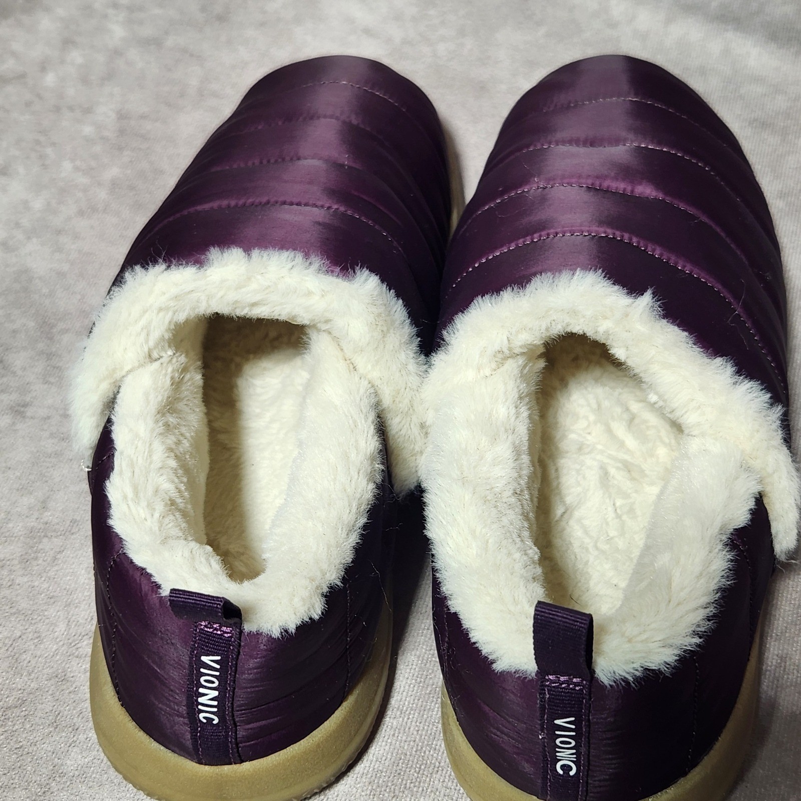 как выглядит Vionic Tranquil Purple Quilted Faux Fur Sherpa Lined Orthotic Slippers Womens 9 фото