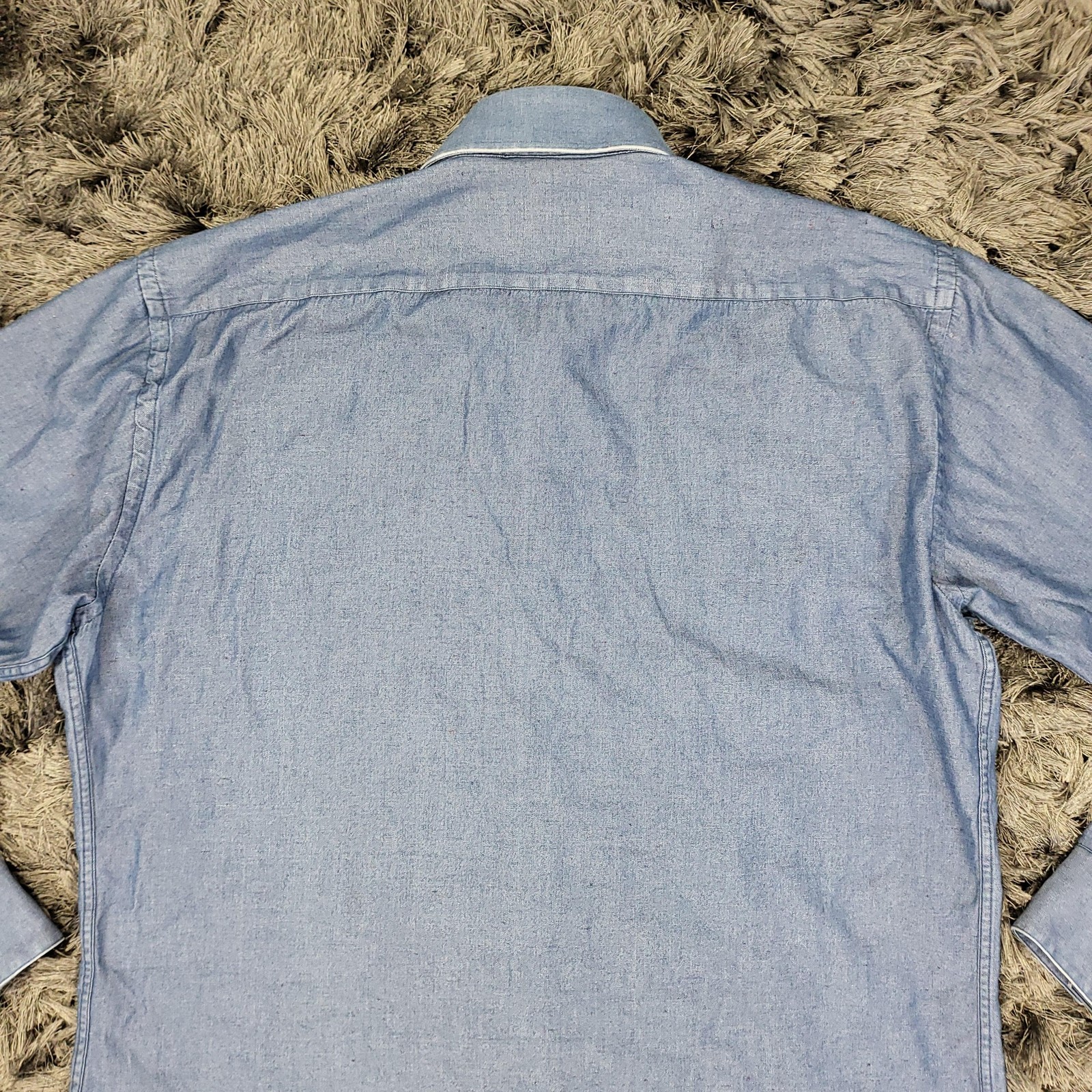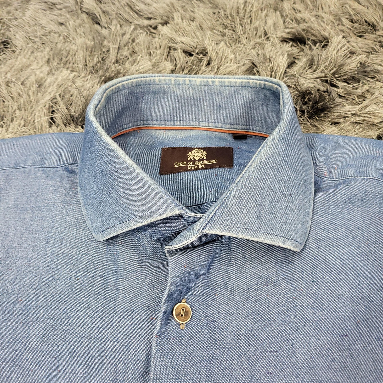 как выглядит Circle Of Gentlemen Shirt Mens 42 Blue Twill Lance WS Long Sleeve Button Front фото