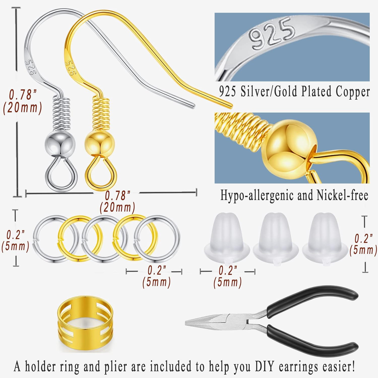 Earring Hooks for Jewelry Making, 602 Pcs Earring Making Supplies, 925 Silver an