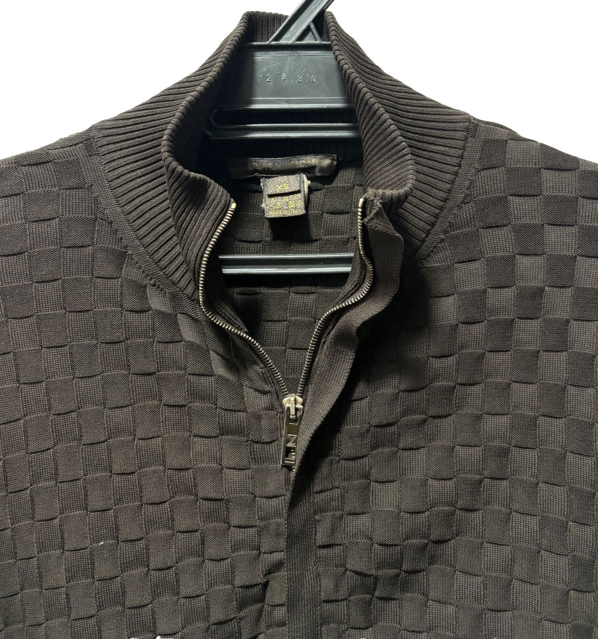 Louis Vuitton LV Vtg Knit Cotton Damier Ebene Brown Sweater Dry Clean Italy Made