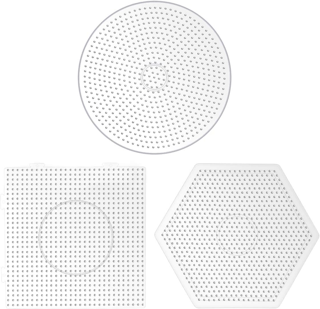 3PCS 5Mm Fuse Beads Boards, Large Clear Pegboards Kits, Hexagon Square Round