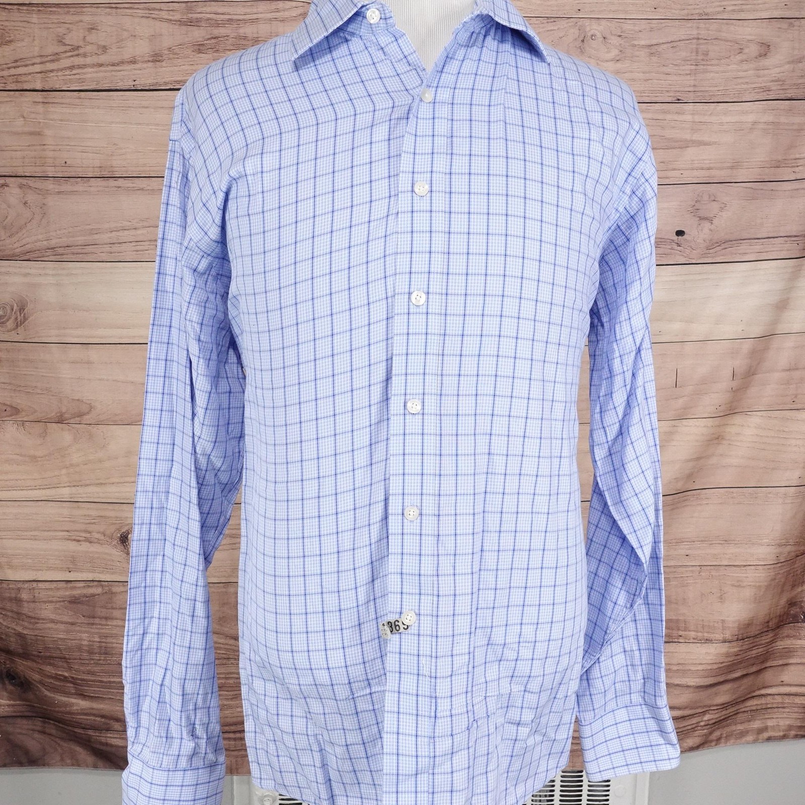 как выглядит Michael Kors Shirt Mens 2XL 18 36/37 Blue Check Plaid Button Front Cotton Dress фото