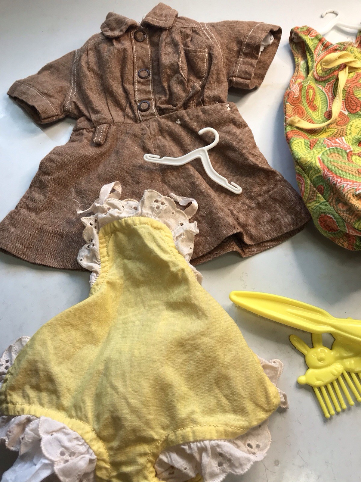 как выглядит Vtg 50s Tagged Terri Lee 16 Doll Dress Antq Clothes Romper Brown Yellow HTF Lot фото
