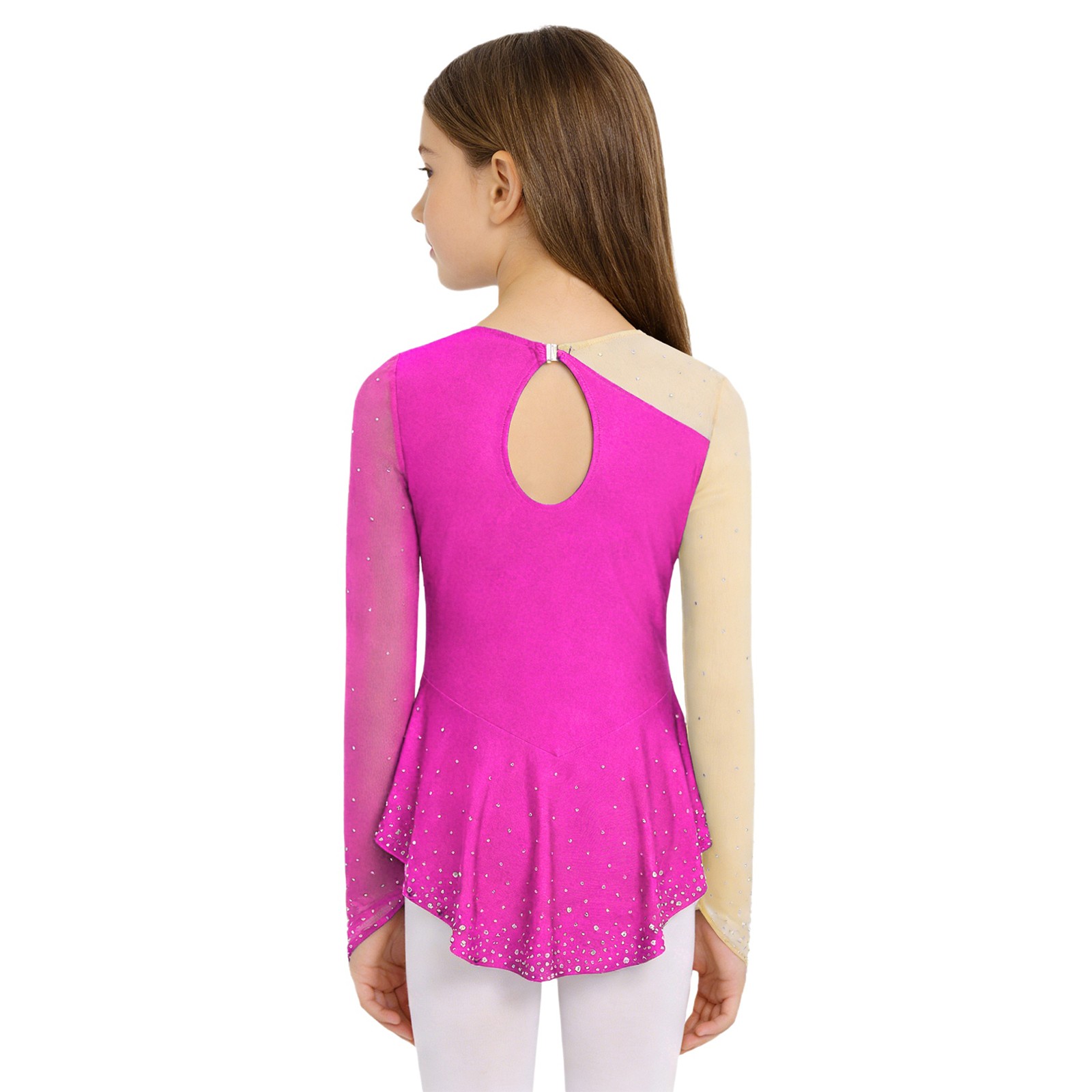 как выглядит Girls Lyrical Dance Dress Long Sleeve Rhinestones Roller Skating Dress Leotard фото