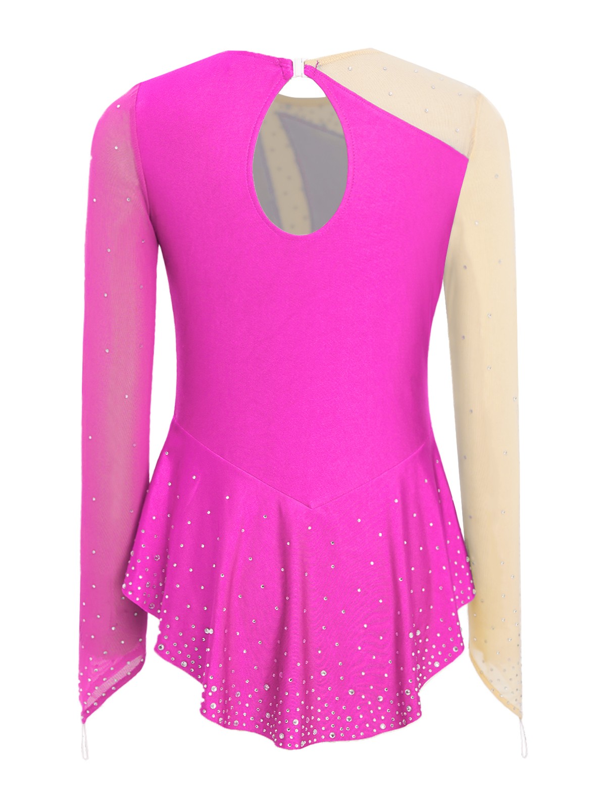 Girls Lyrical Dance Dress Long Sleeve Rhinestones Roller Skating Dress Leotard