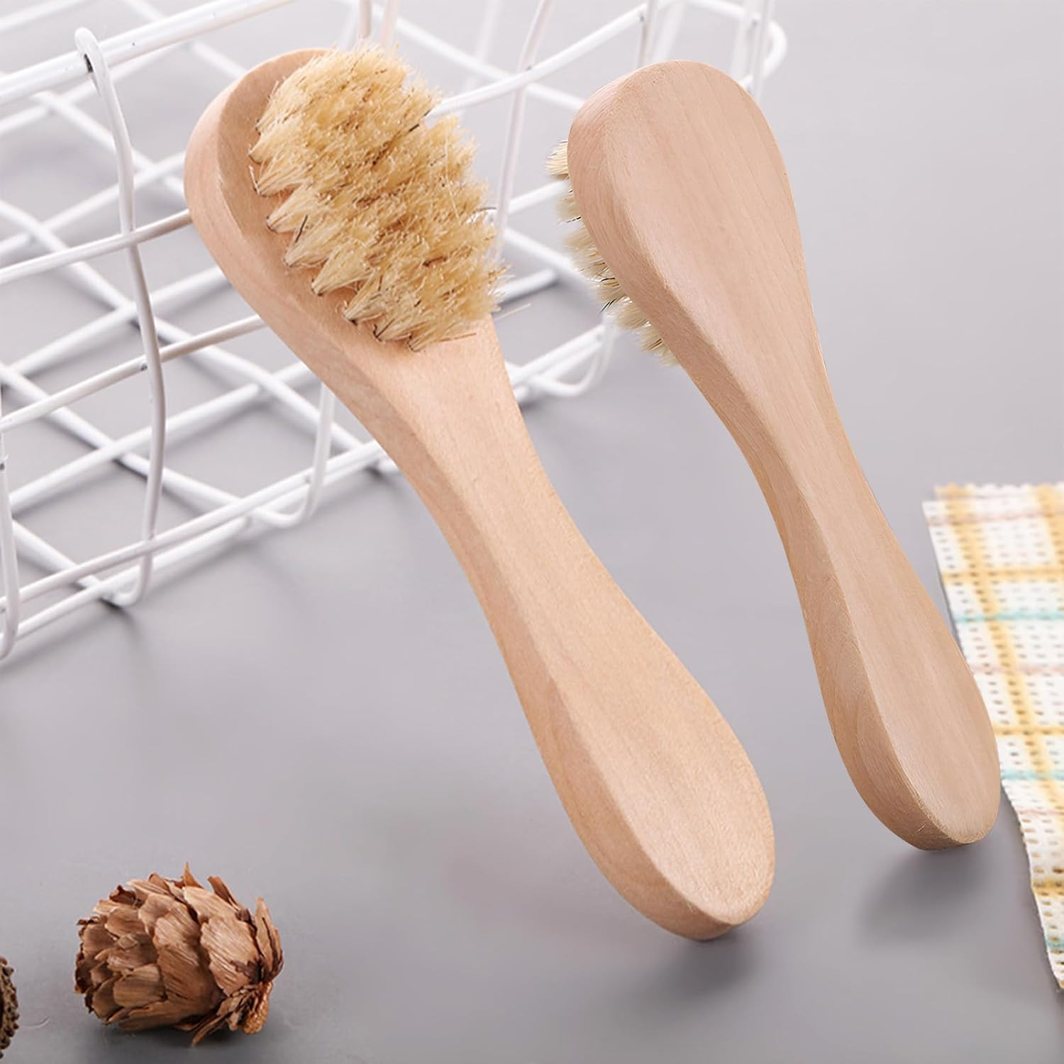 2 Pack Mini Dry Brush, Natural Bristle Small Body Brush, Exfoliating Facial Clea