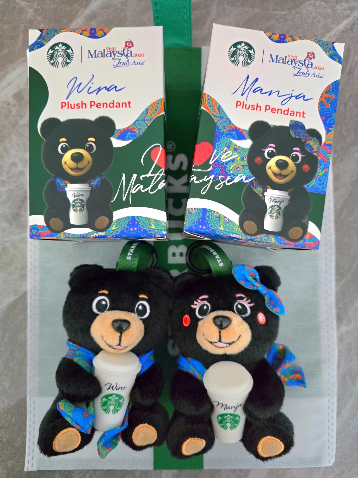 • TWO Starbucks Malaysia Exclusive Bearista Bear Plush Keychain Bag Charm W Cards