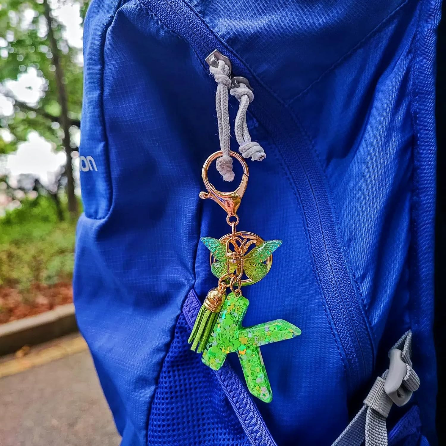 Cute Initial Letter Keychains for Women Girls Tassel Butterfly Pink Purple Green