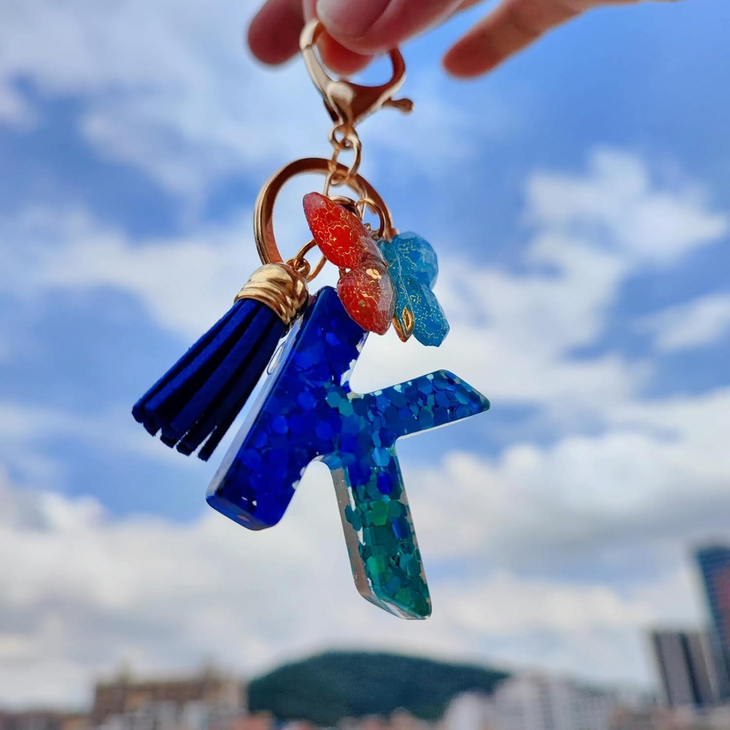 Cute Initial Letter Keychains for Women Girls Tassel Butterfly Pink Purple Green