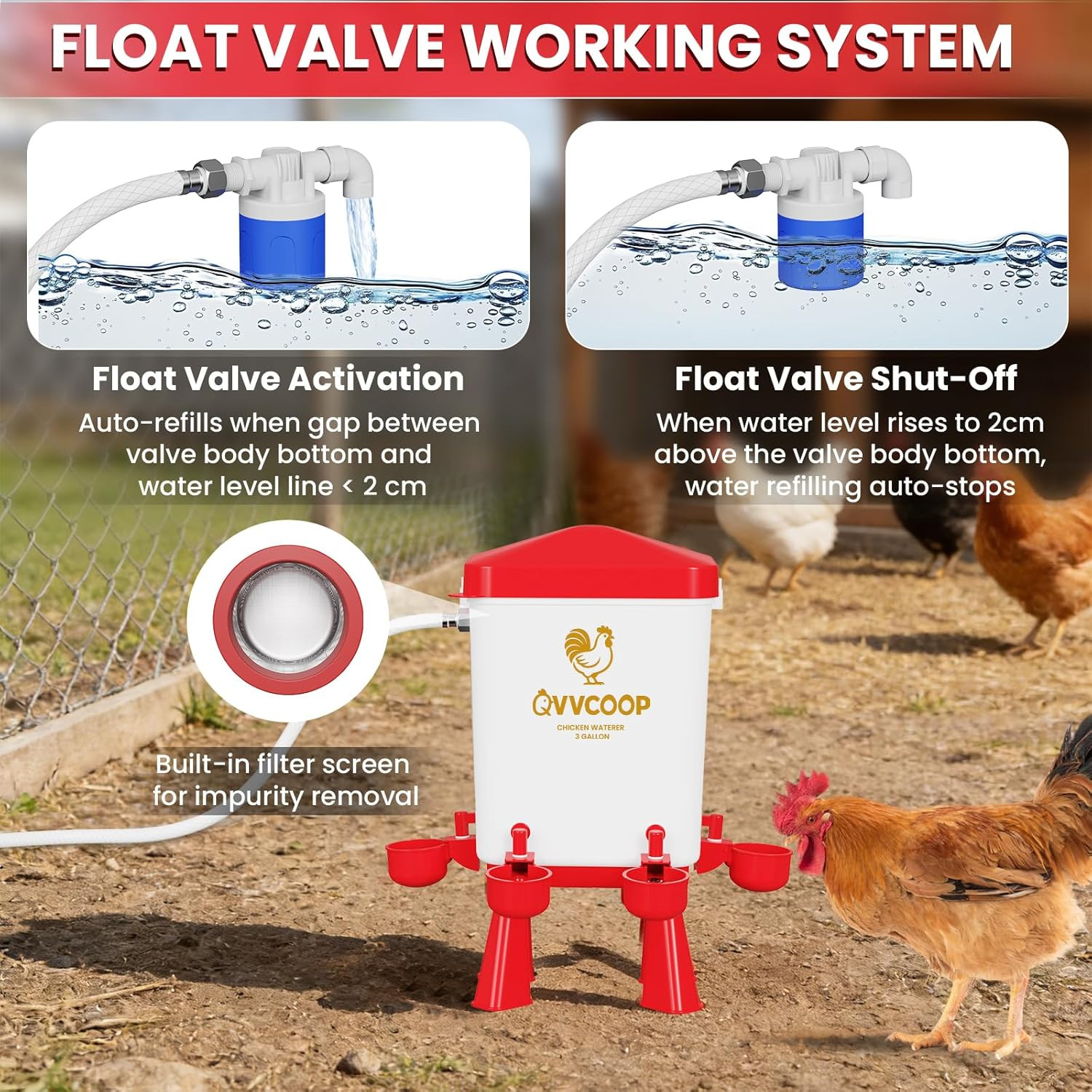 Automatic Chicken Waterer with Float Valve, Elevated Water Dispenser for Chicken