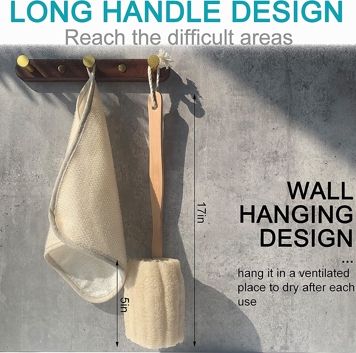 Natural Exfoliating Loofah Luffa Loofa Bath Brush on a Stick - with Long Wooden