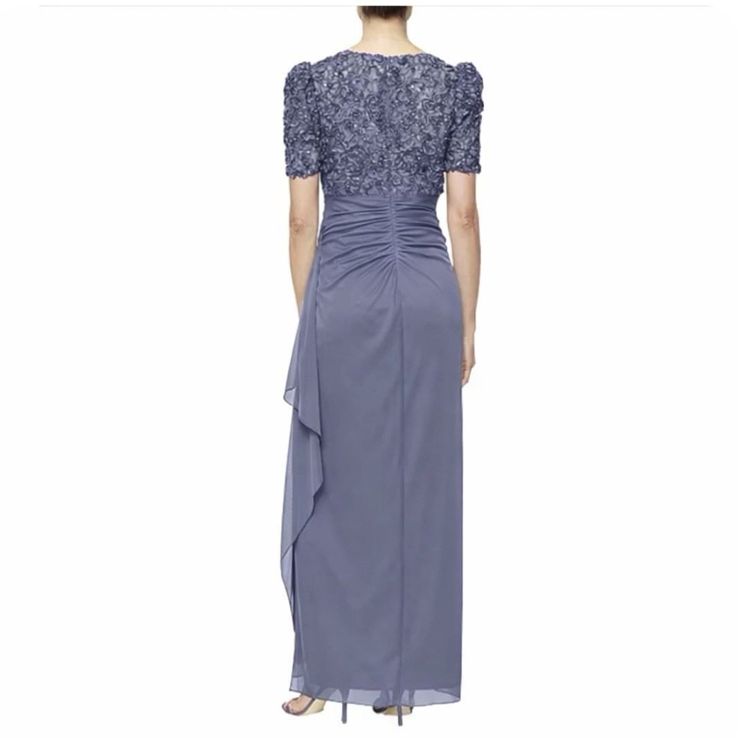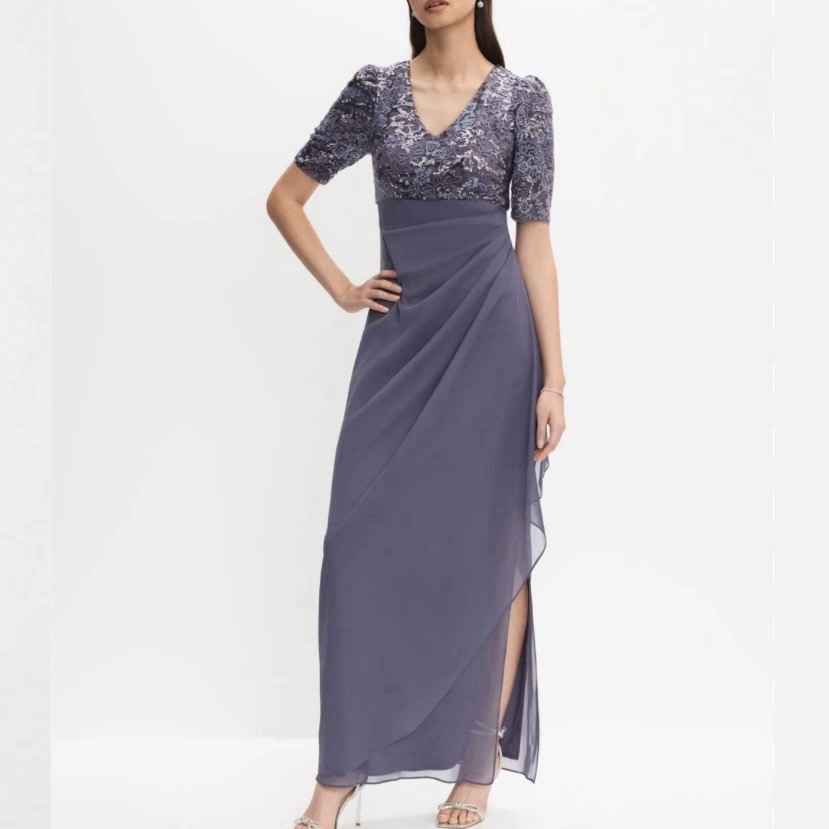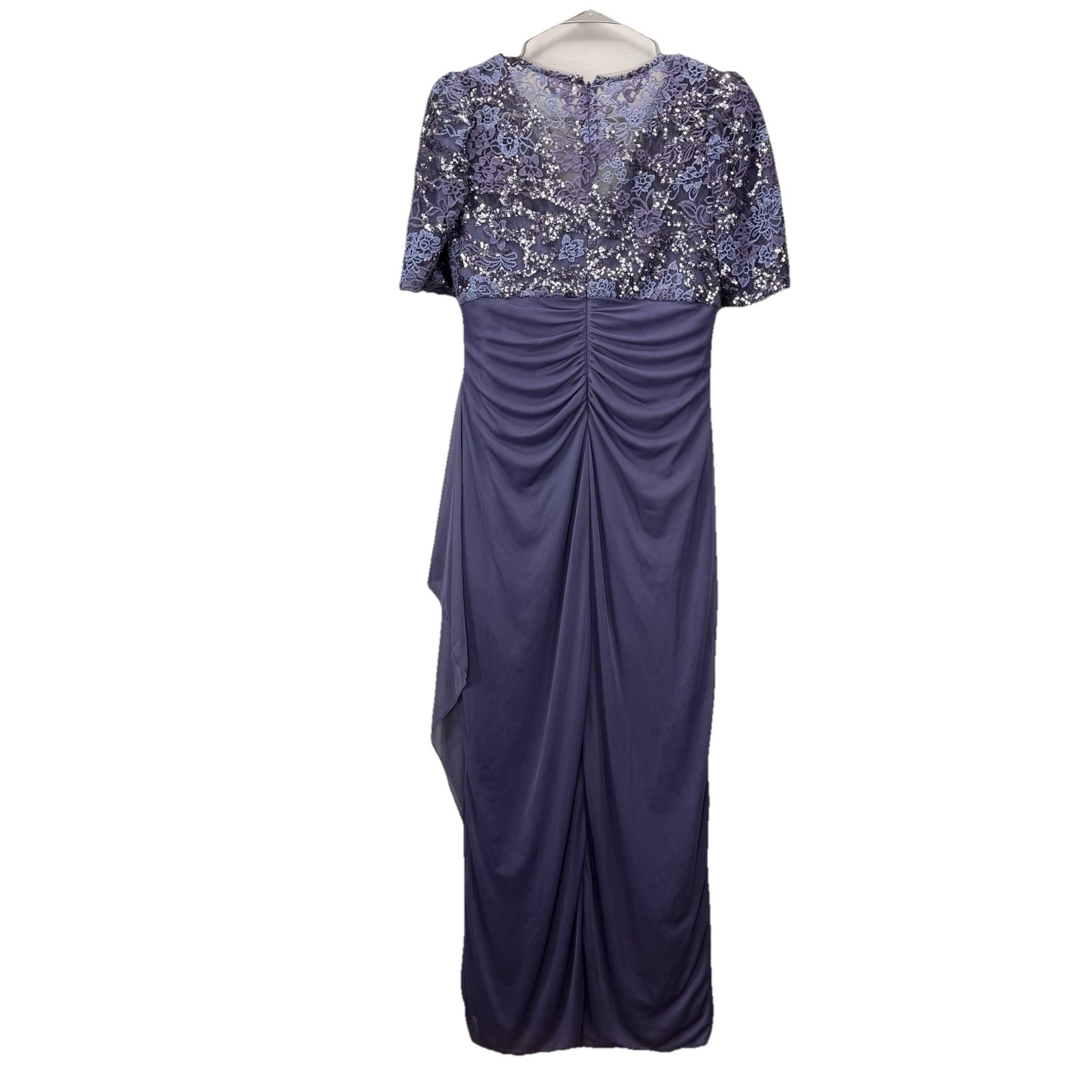 как выглядит Alex Evenings Purple Sequin Short Sleeve Cascade Chiffon Dress Size 8 PETITE фото