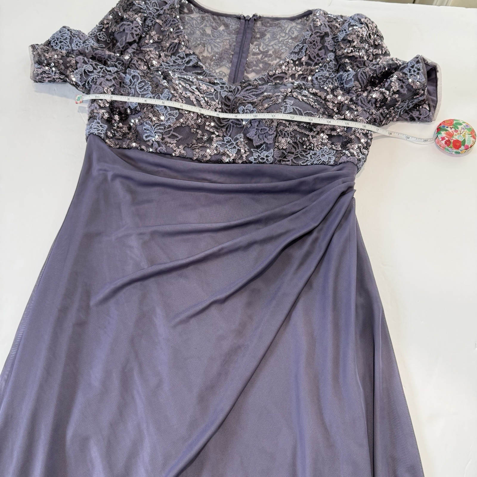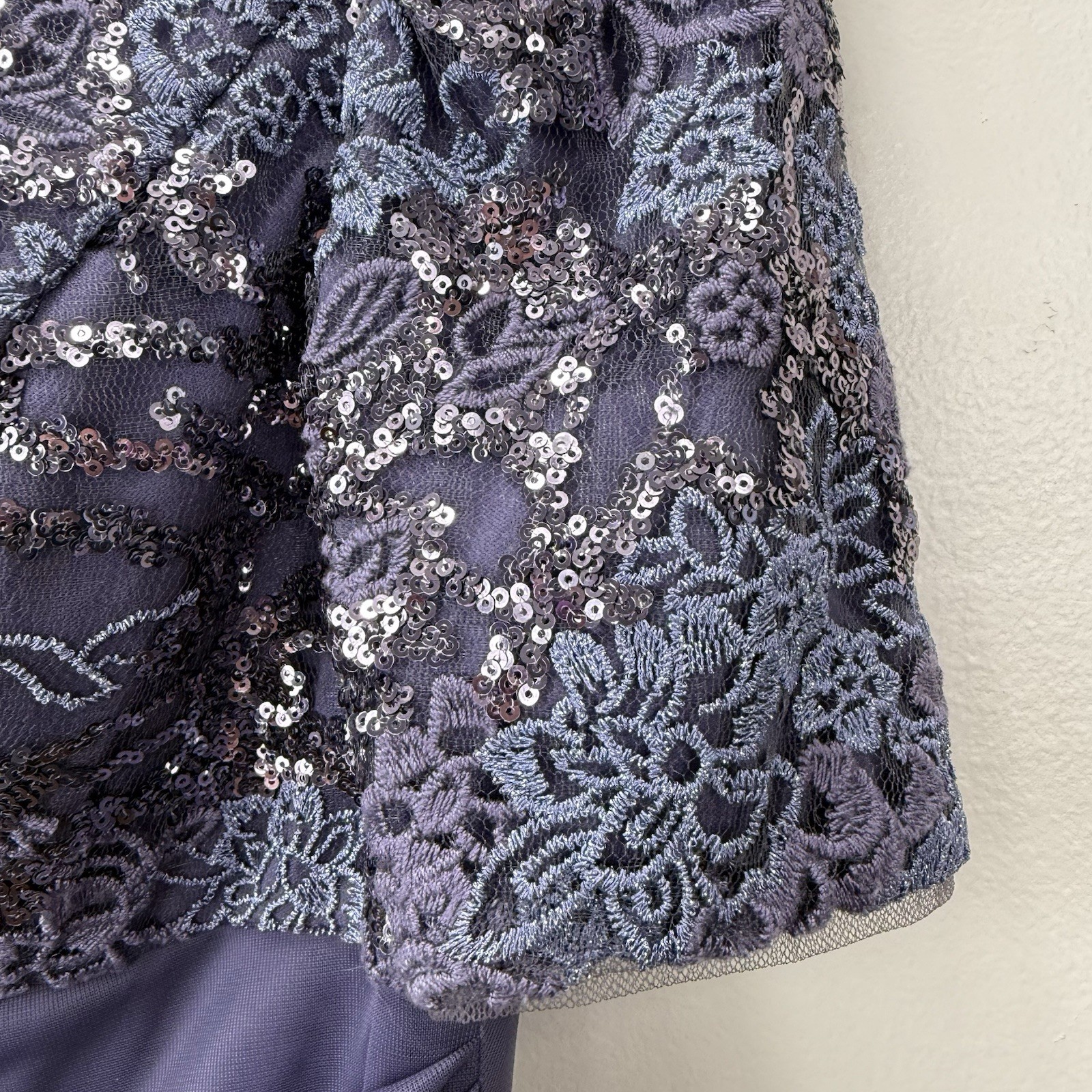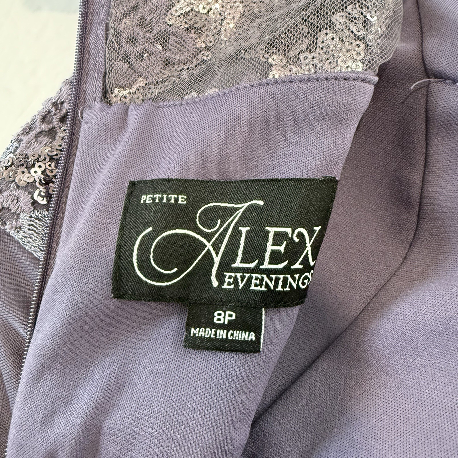 как выглядит Alex Evenings Purple Sequin Short Sleeve Cascade Chiffon Dress Size 8 PETITE фото