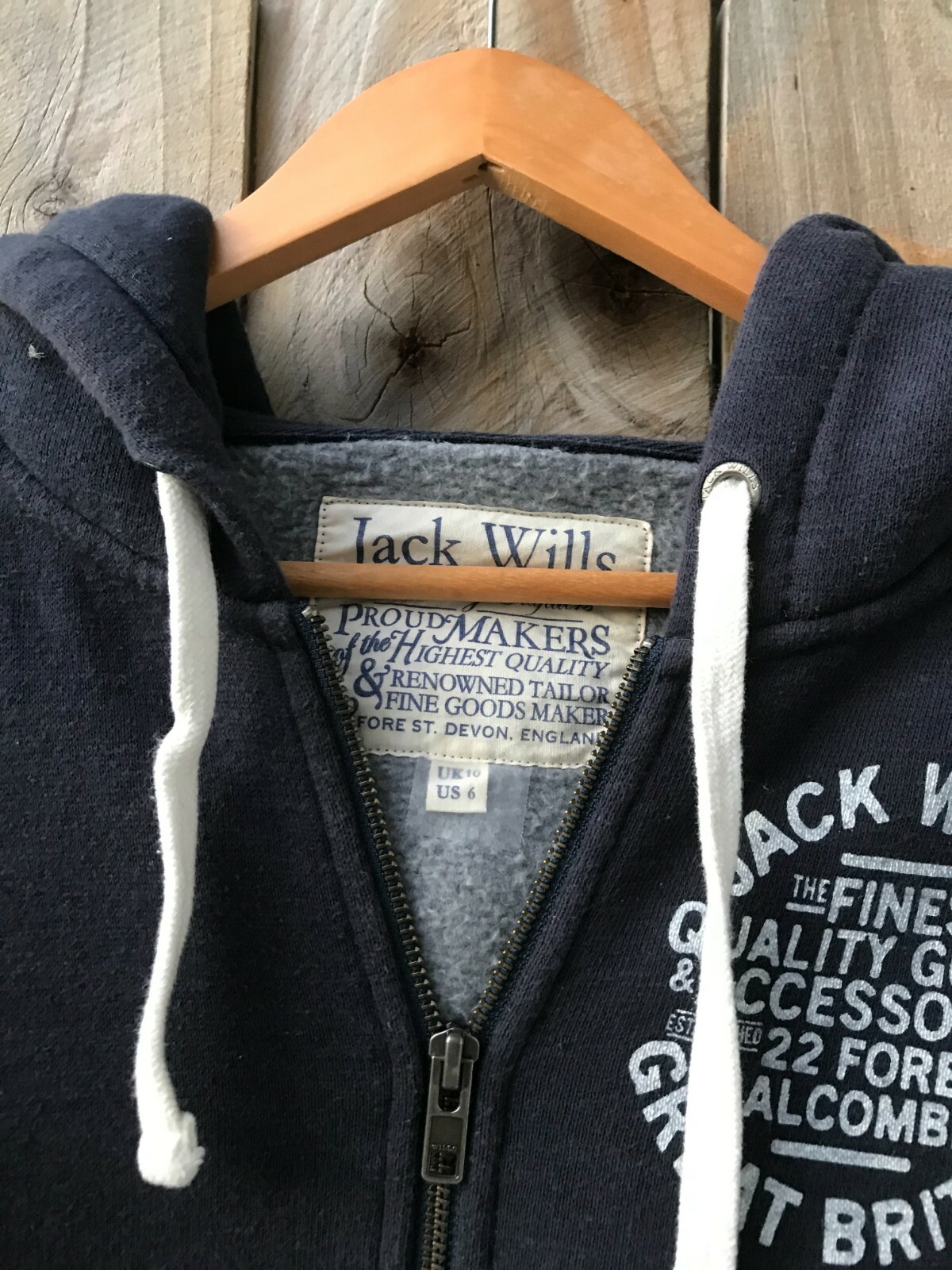 как выглядит Authentic JACK WILLS Zip Up Logo Sweatshirt Navy Blue Bought in UK UK 10 US 6 фото
