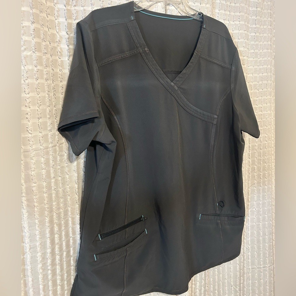 как выглядит Grey Womens XL Scrub Top V-Neck Short Sleeve Pewter WM841 195036-0419 фото