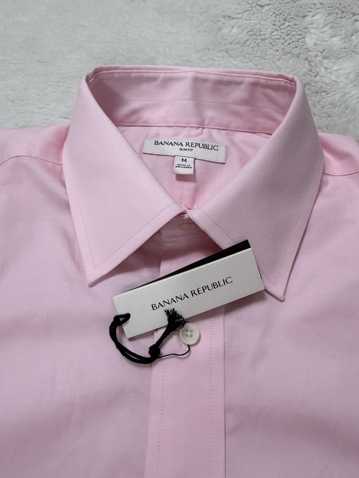 NWT Banana Republic Men's Dress Shirt Pink Slim Fit Wrinkle Resistant Size M 80