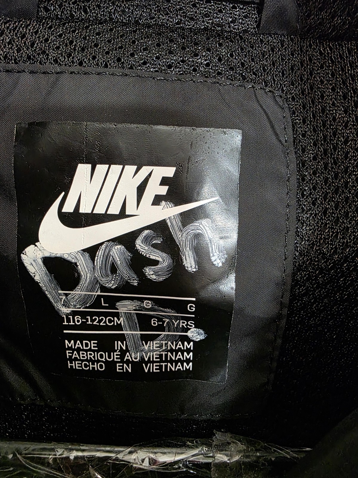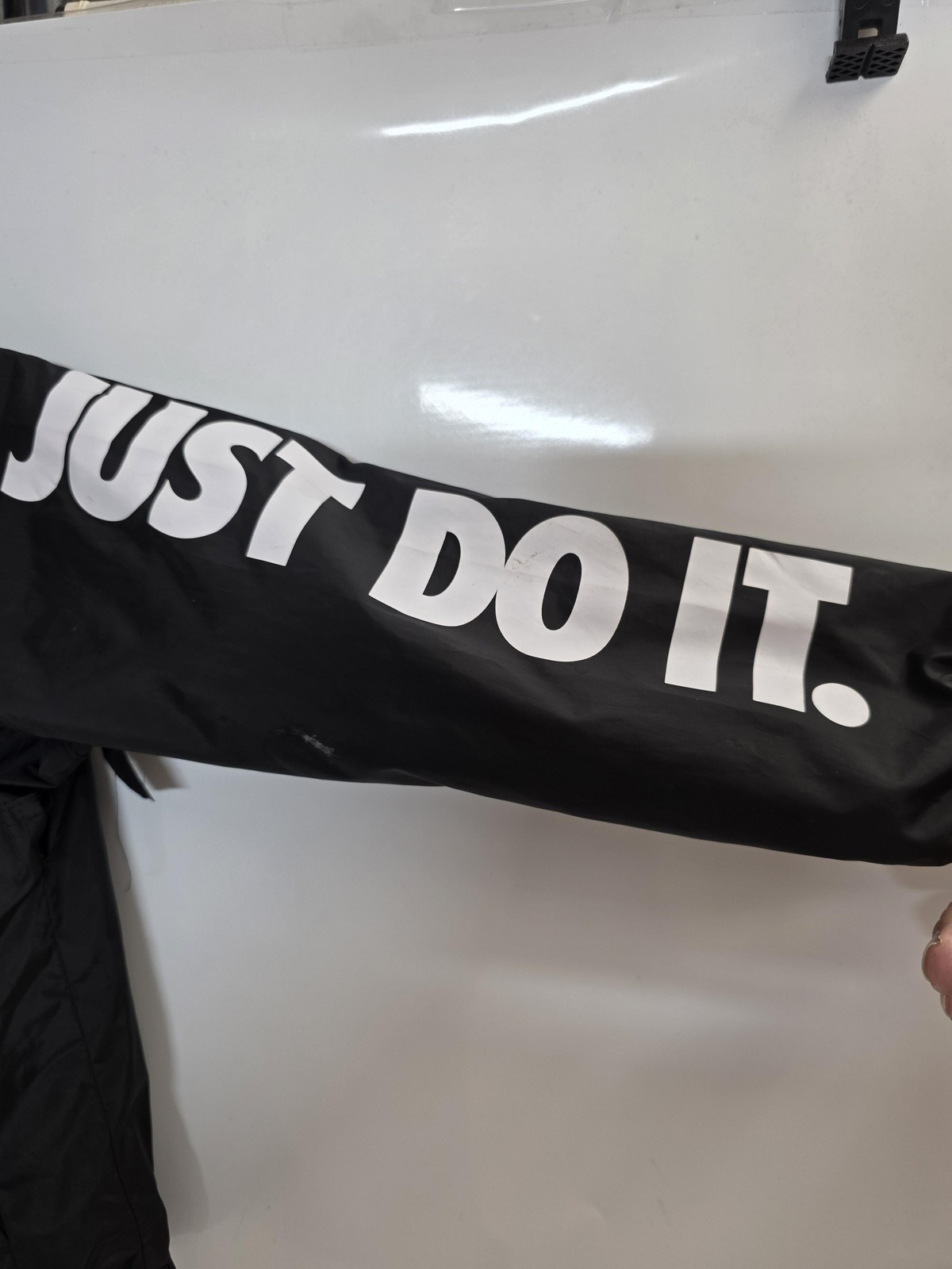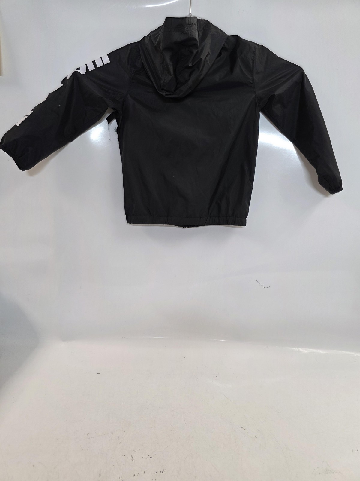 как выглядит Nike Jacket Boys 7 Black Hooded Windbreaker Just Do It Swoosh Logo Kids фото