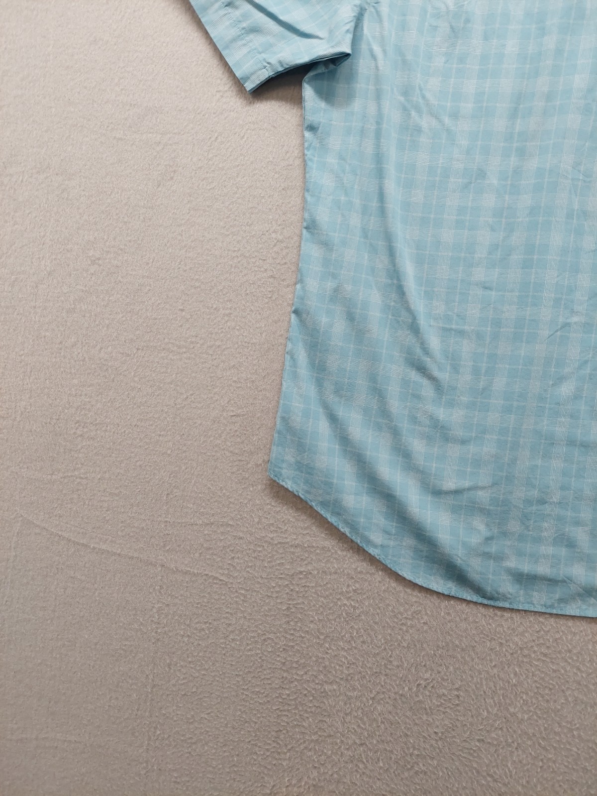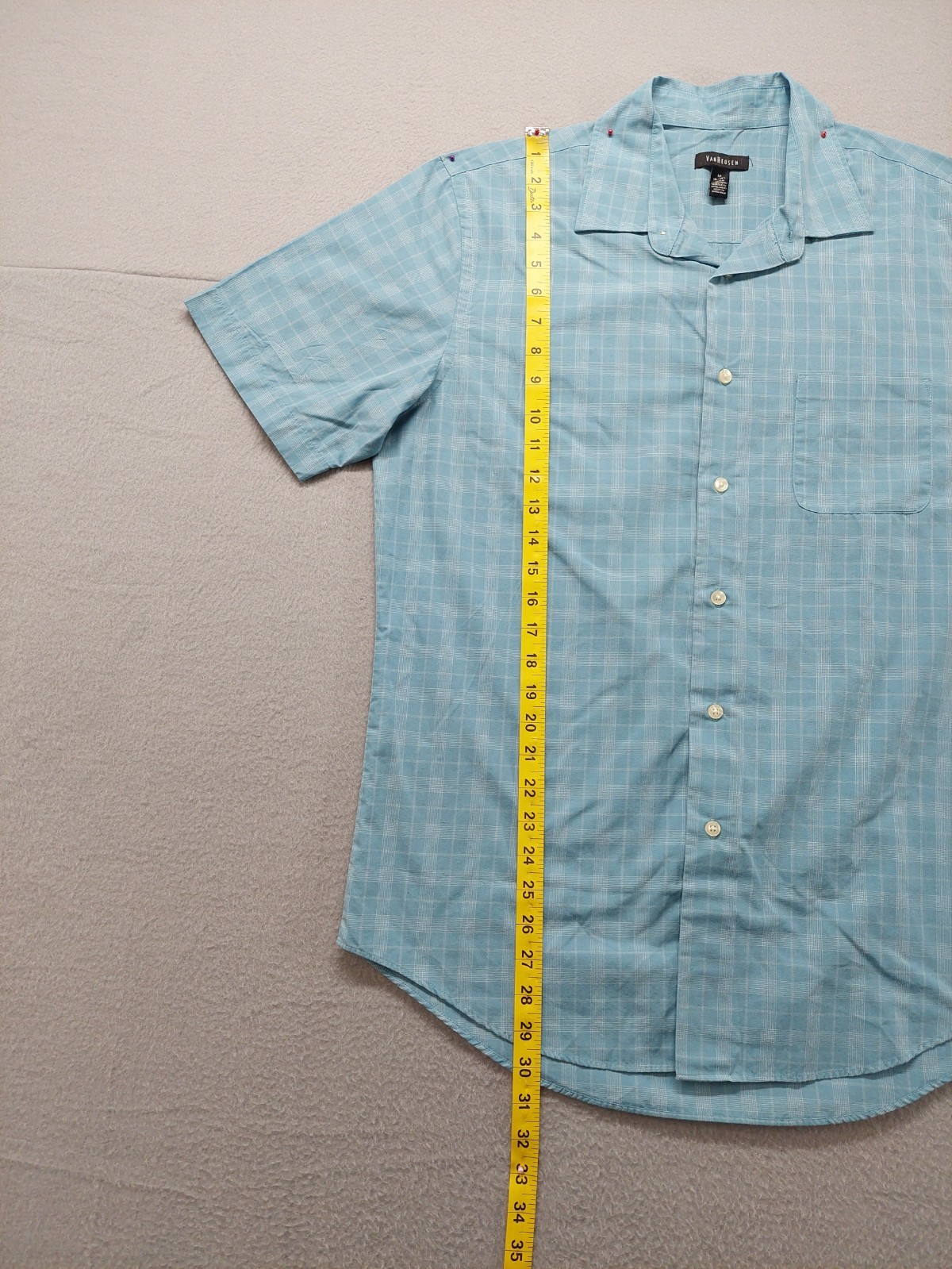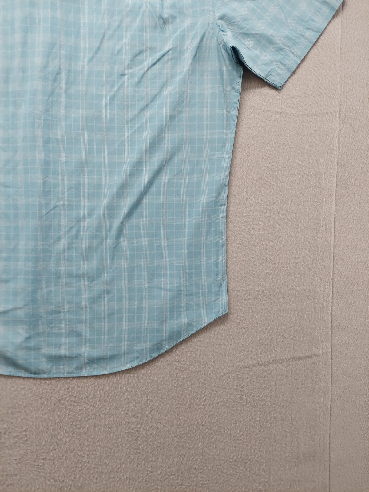 Van Heusen Men Shirt M Blue Check Short Sleeve Button Down Collared Casual Wear