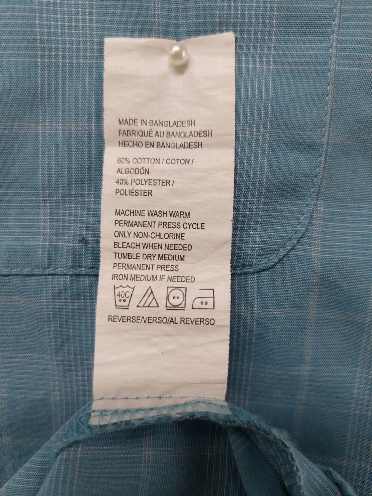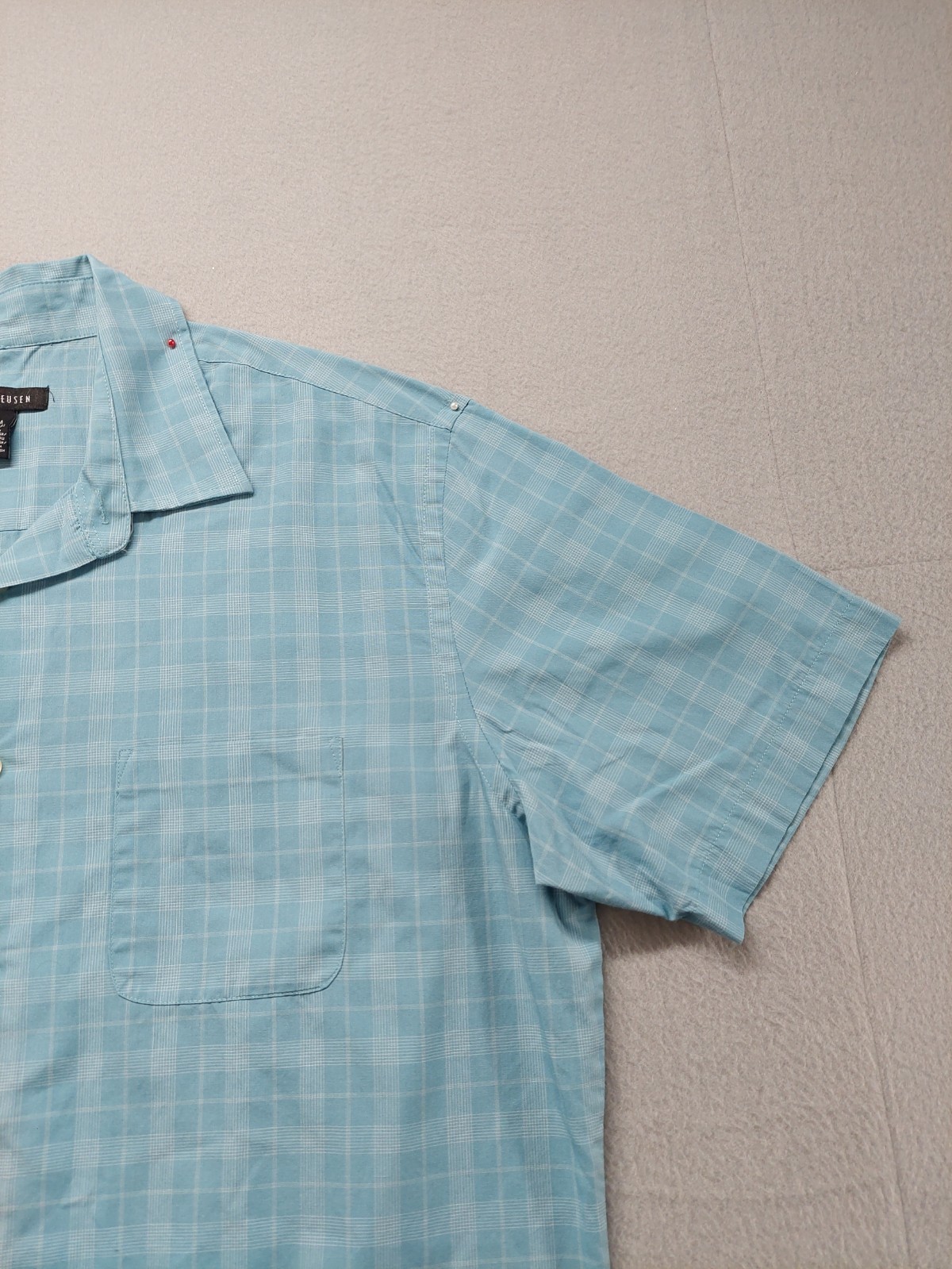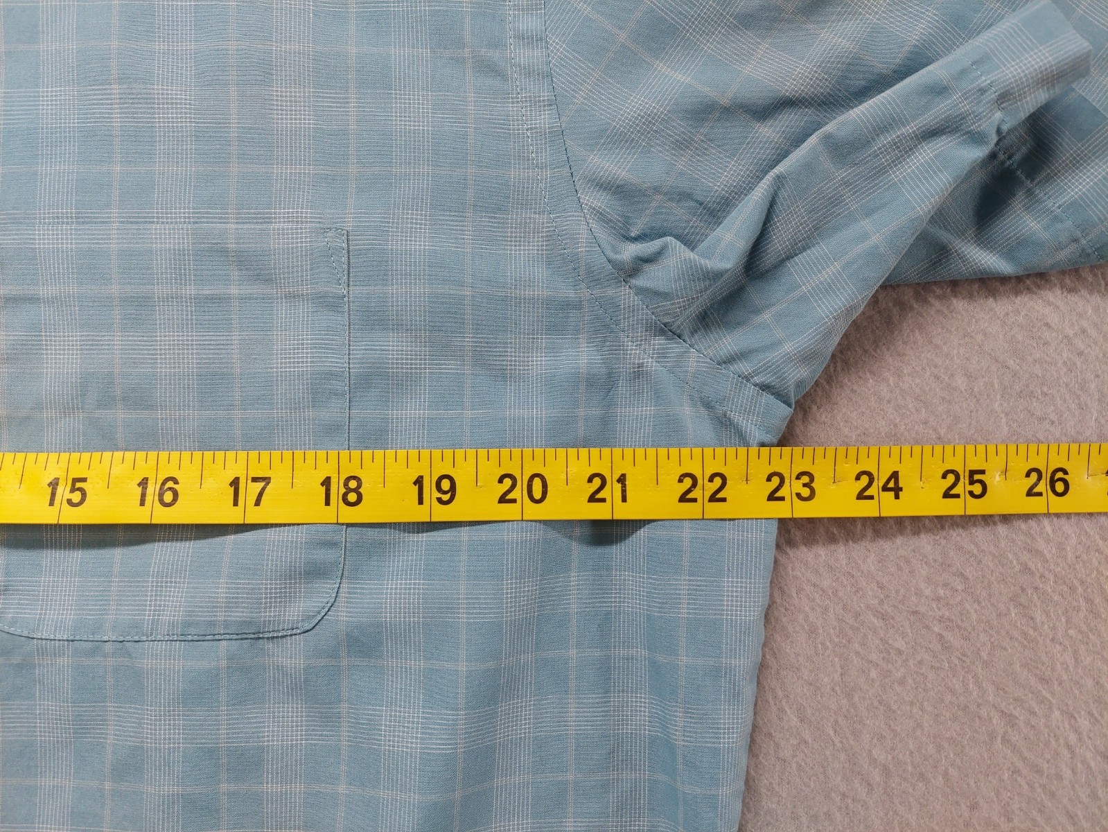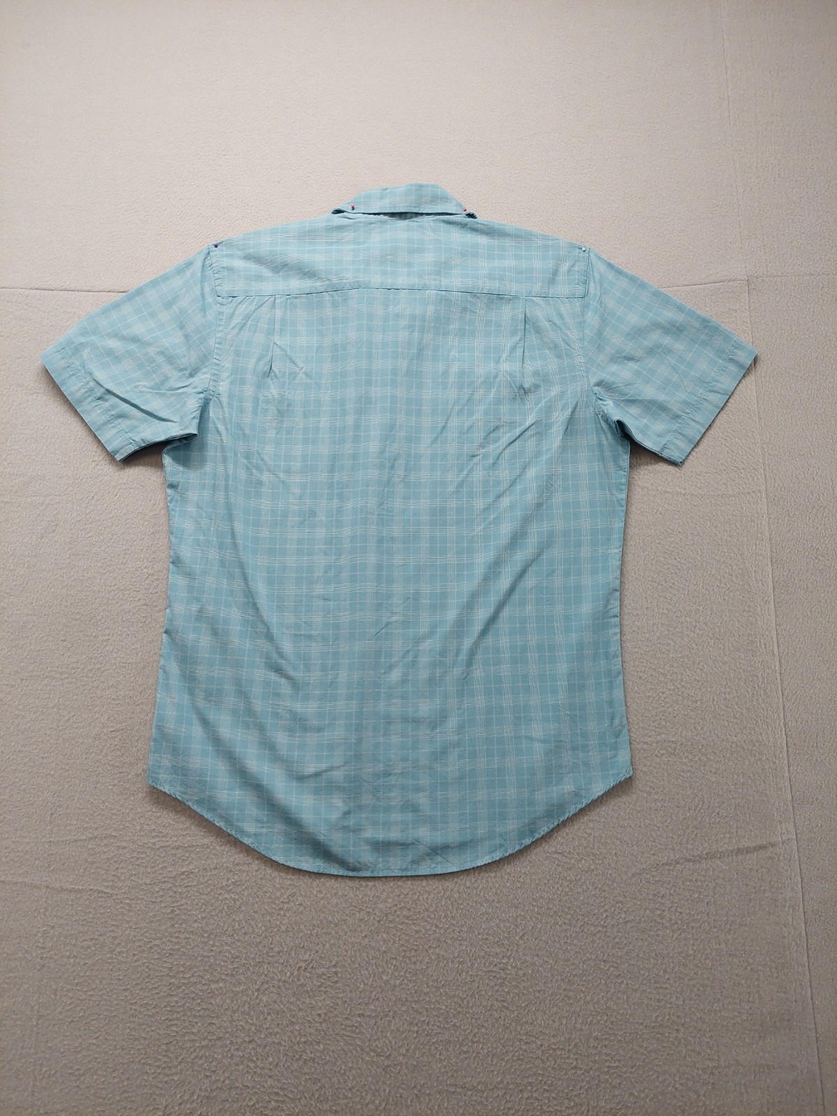 Van Heusen Men Shirt M Blue Check Short Sleeve Button Down Collared Casual Wear