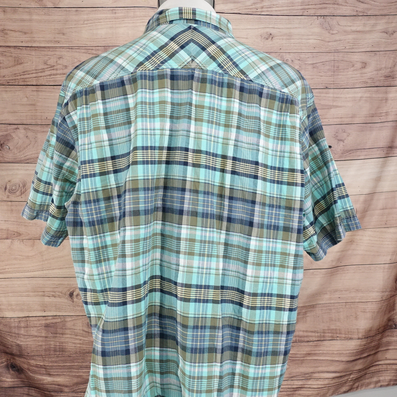 RED HEAD BRAND CO SHORT SLEEVE TEAL PLAID BUTTON DOWN SHIRT MENS SIZE XL