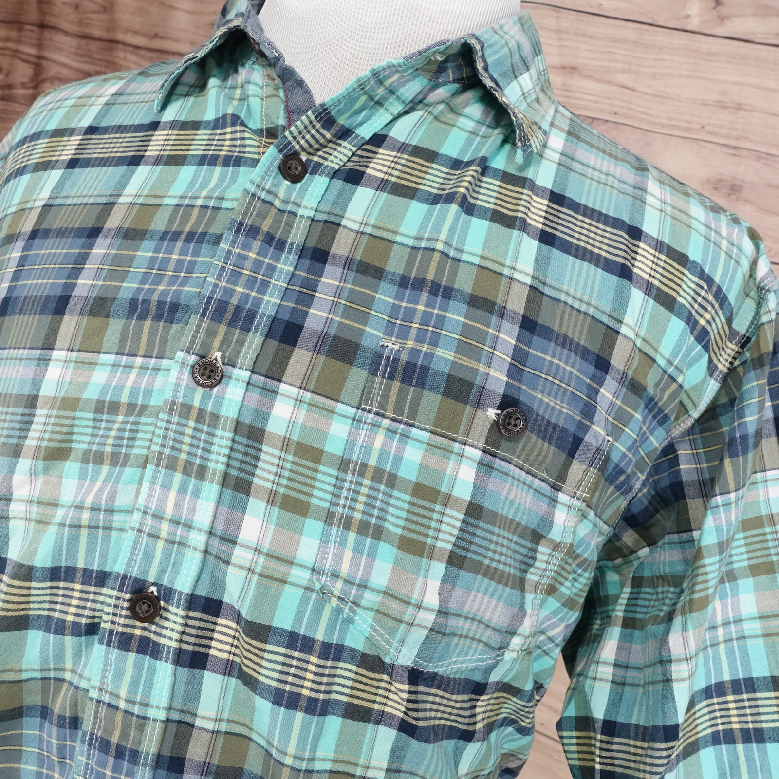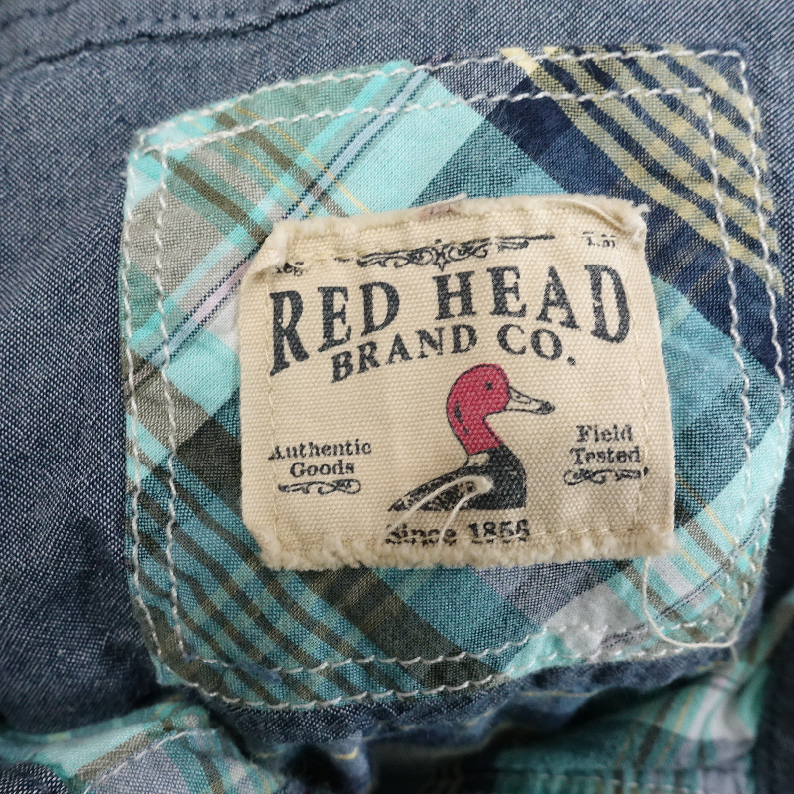 как выглядит RED HEAD BRAND CO SHORT SLEEVE TEAL PLAID BUTTON DOWN SHIRT MENS SIZE XL фото