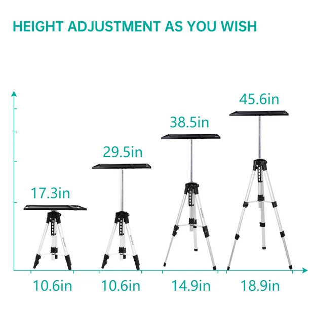 Portable Tripod Stand With Tray For Projector/Laptop/Camera Adjustable 17'-46''