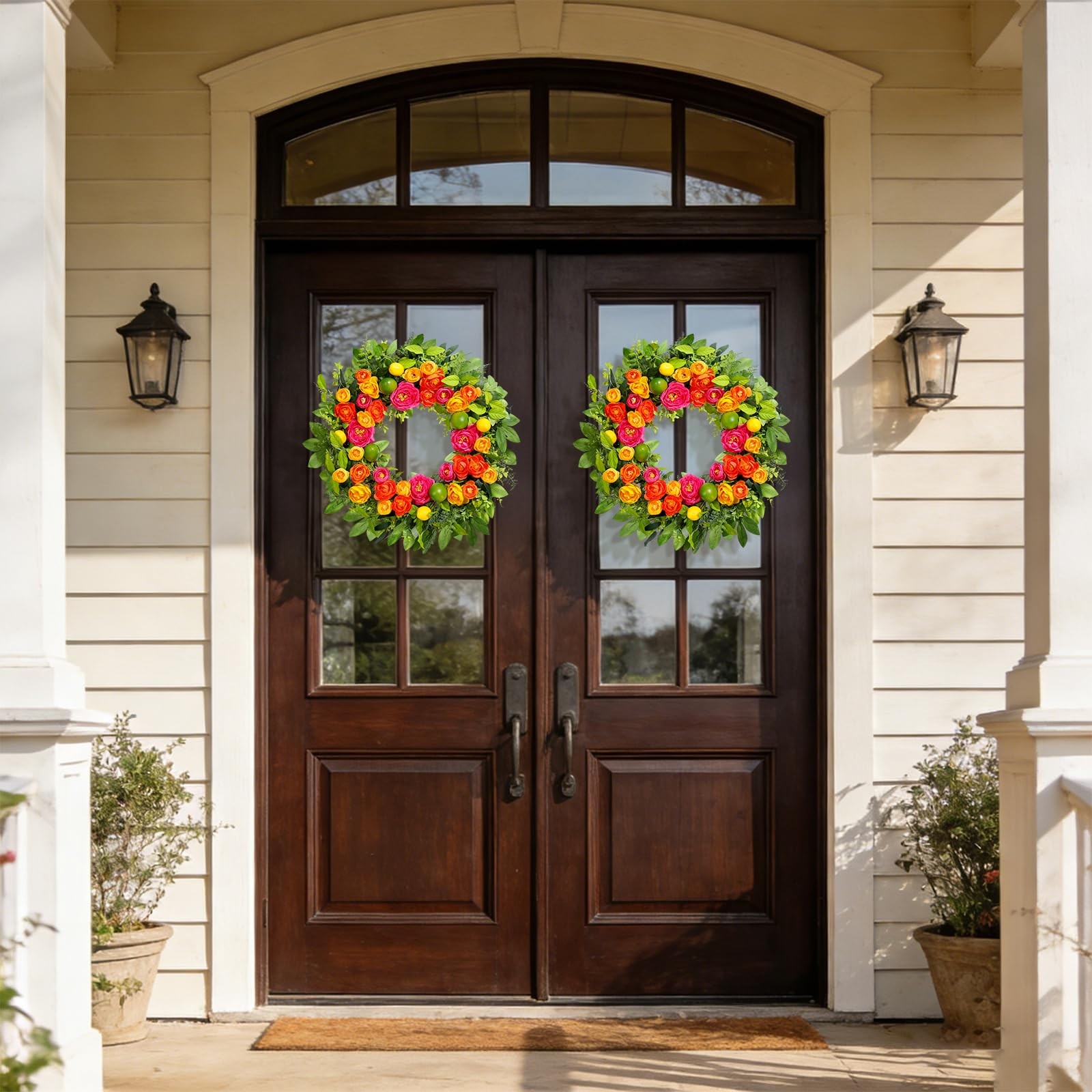 26 Spring Wreaths for Front Door, Large Artificial Lemon Wreath with Yellow ...