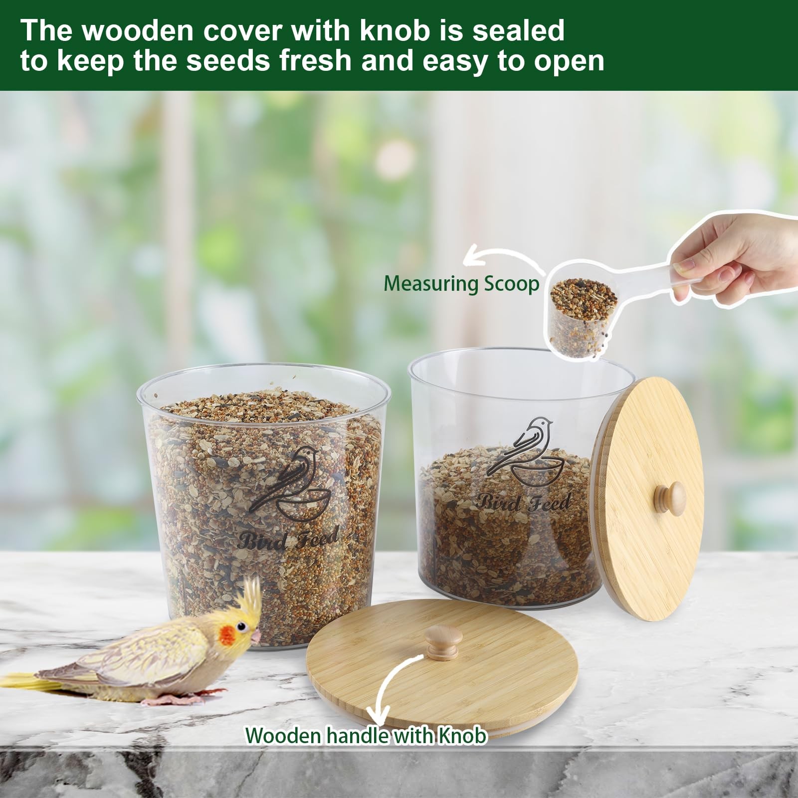 2pack Airtight Bird Seed Storage Container,85oz Clear Bird Food Container wit...