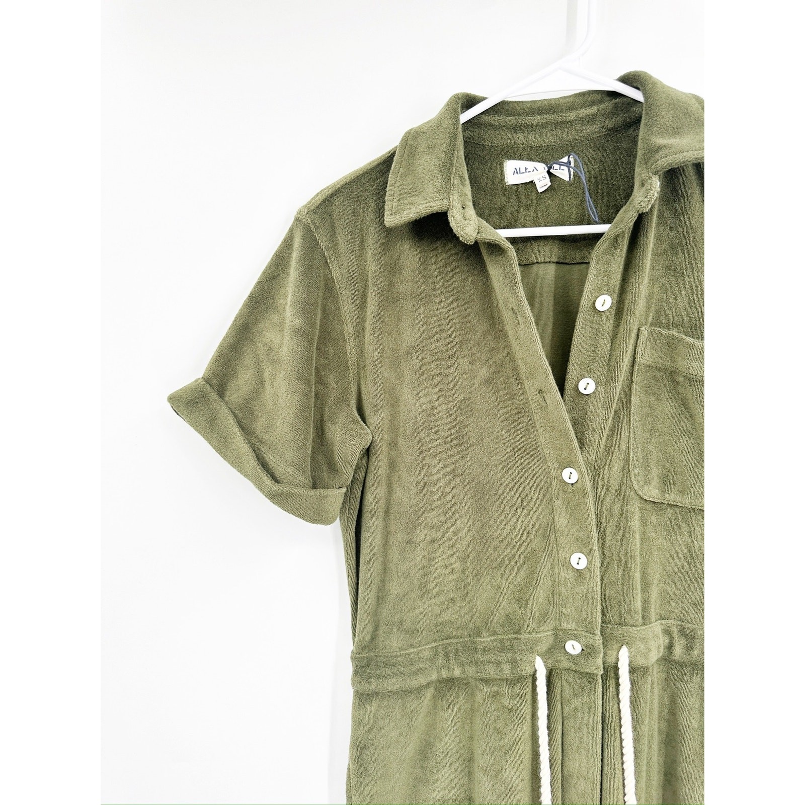 как выглядит Alex Mill Benny Terry Cloth Olive Green Drawstring Jumpsuit Size XS фото
