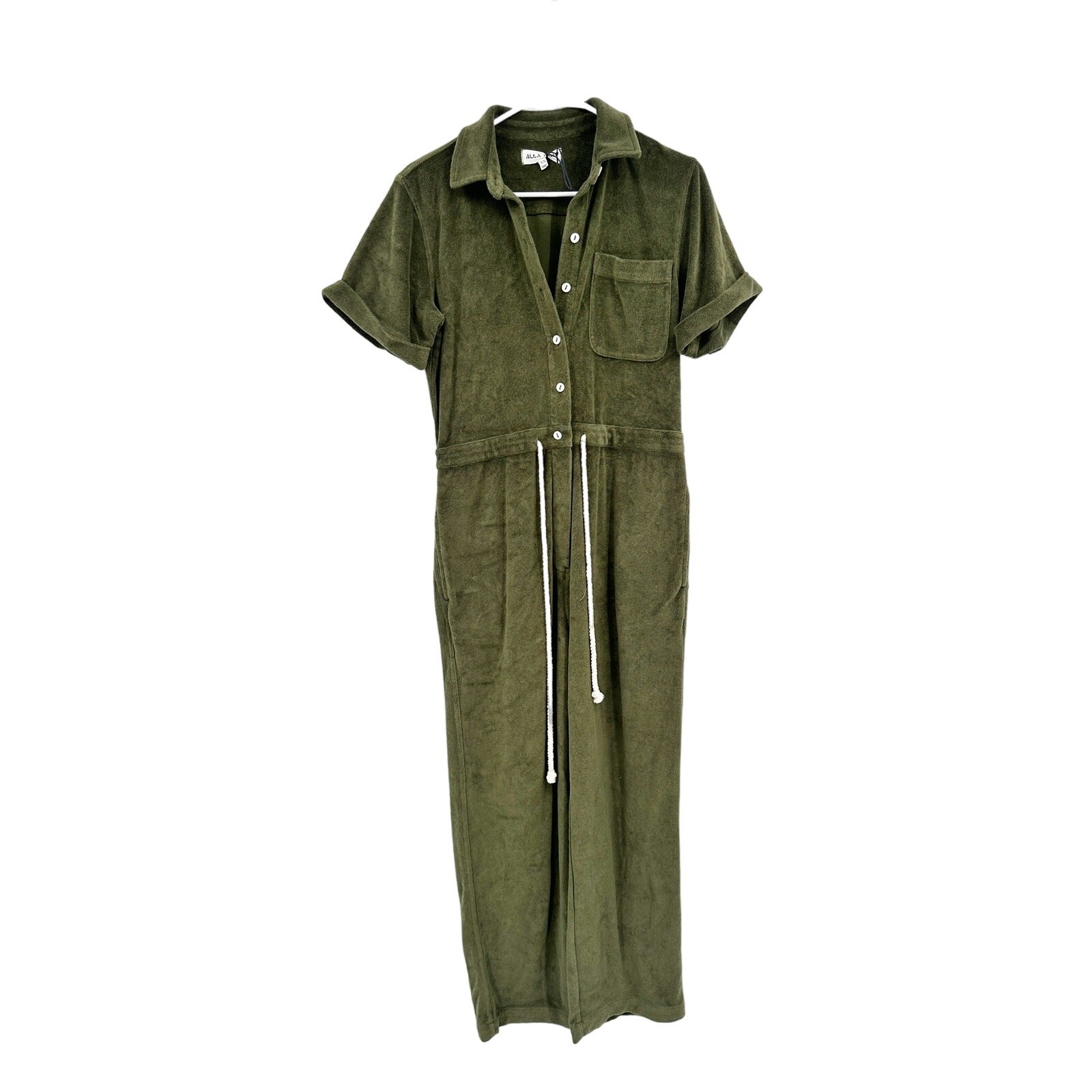 Alex Mill Benny Terry Cloth Olive Green Drawstring Jumpsuit Size XS