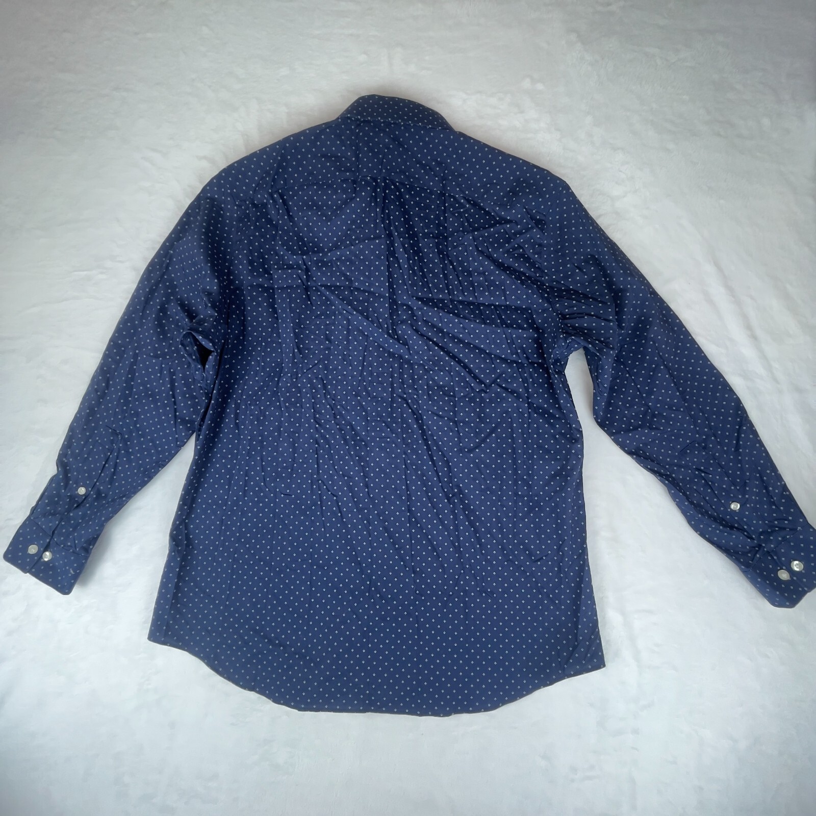 как выглядит Michael Kors Dress Shirt Mens 17 Navy Geo Print Slim Fit Airsoft Button Down фото