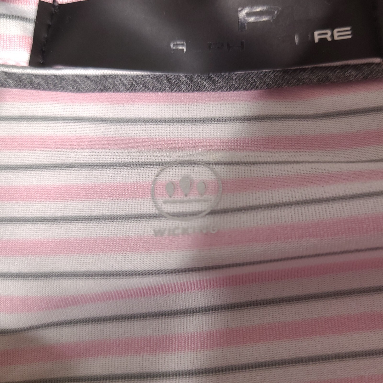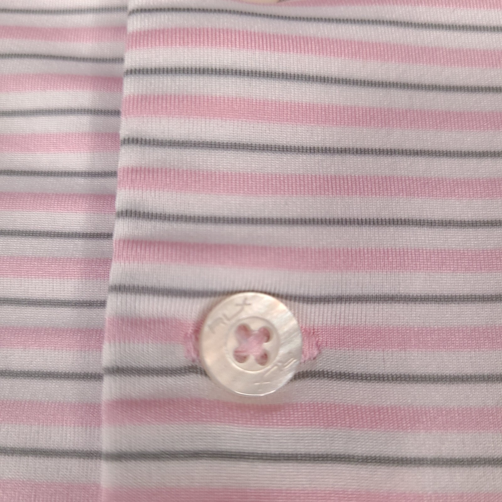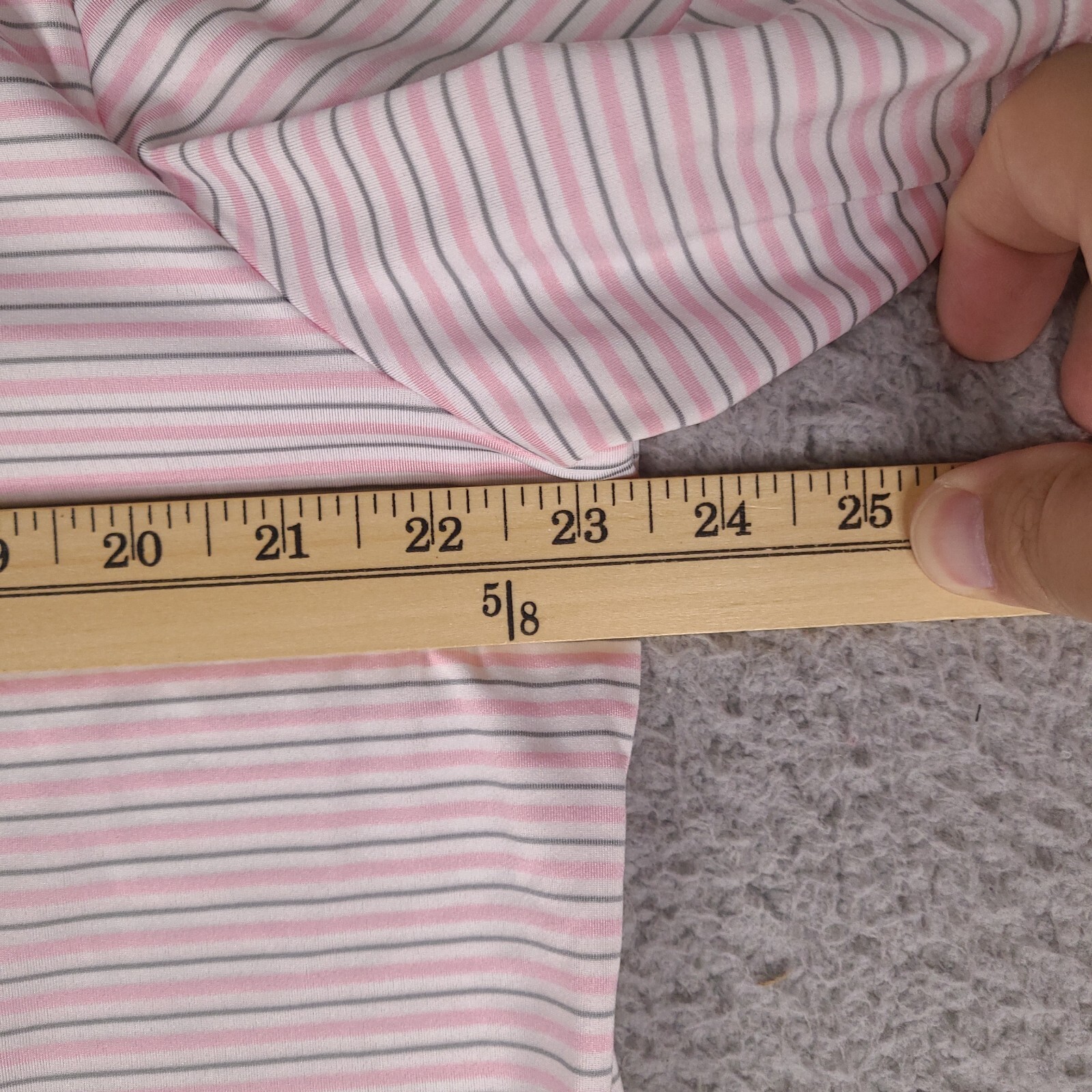 RLX Ralph Lauren Polo Shirt Mens Large Pink White Striped Golf Moisture Wicking