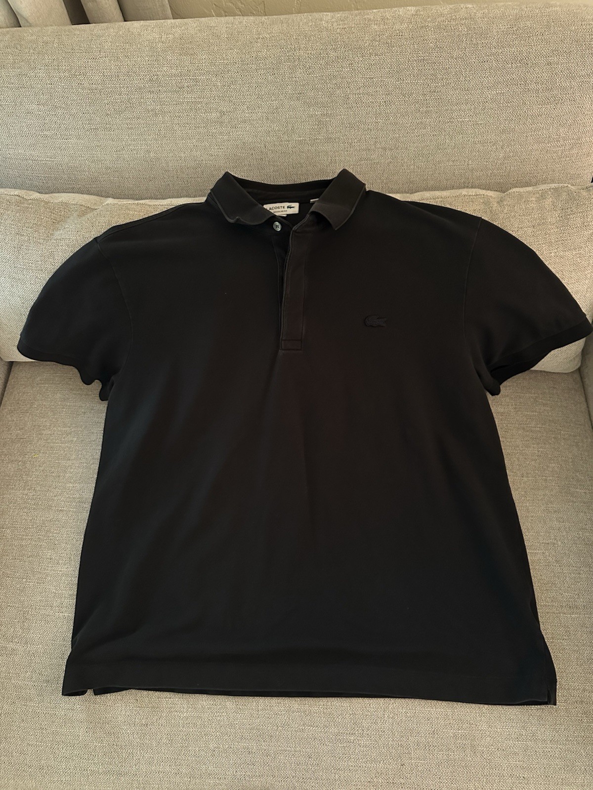 как выглядит Lacoste Mens Regular Fit Black Pique Polo Shirt Short Sleeve Size 3XL фото