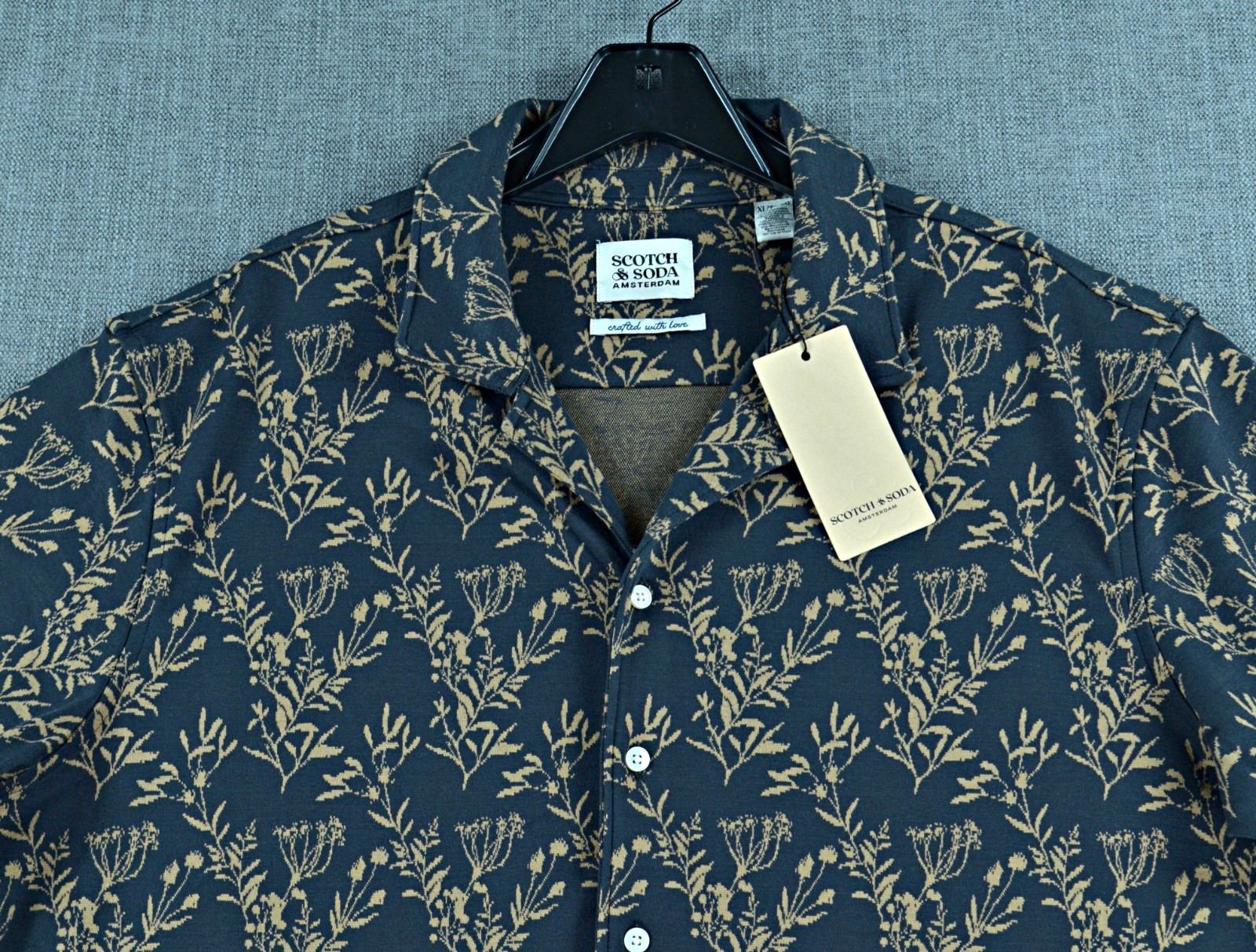 Scotch Soda Shirt Men's XL Berry Jacquard Short Sleeve Knit Camp Shirt NWT