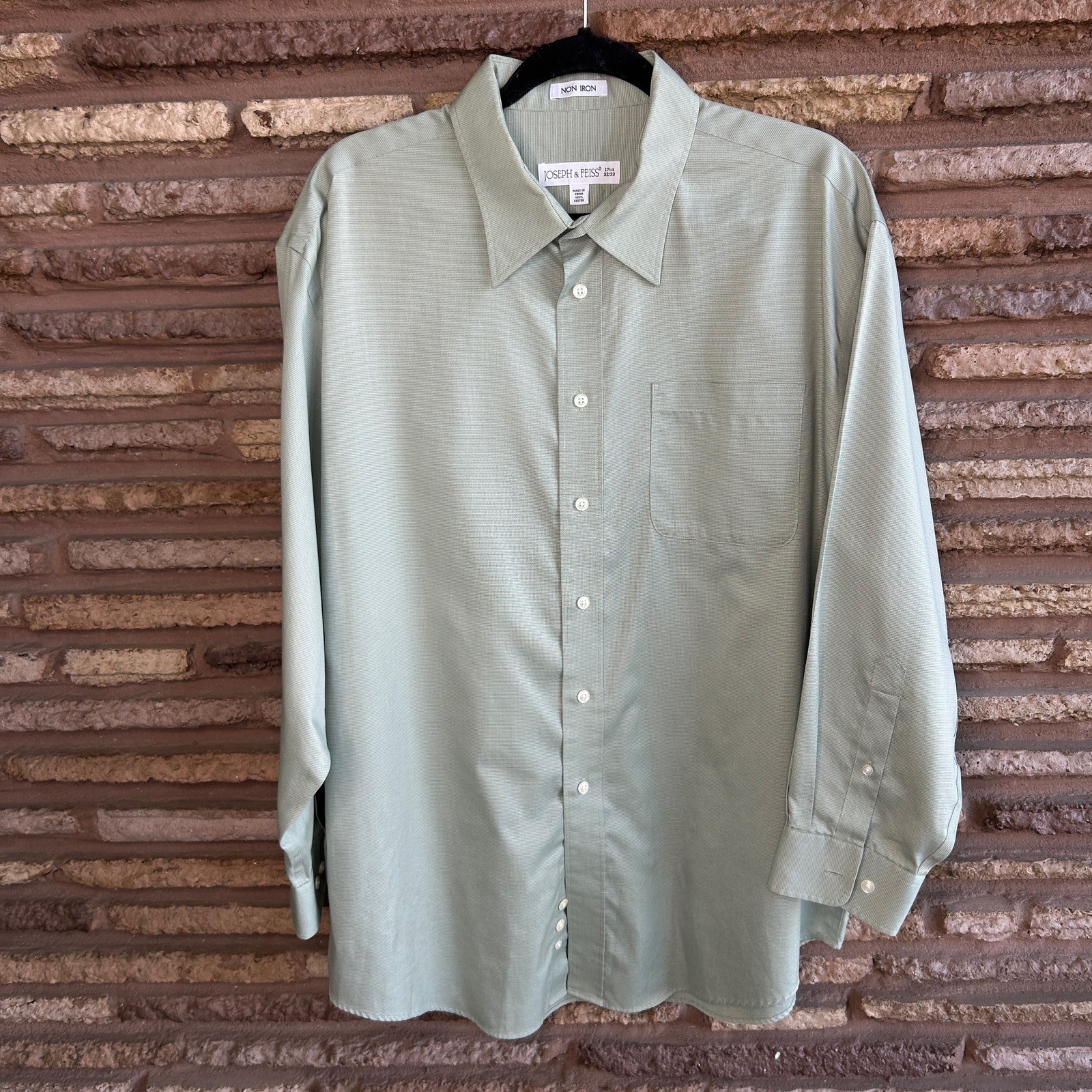Joseph Feiss Dress Shirt Woven Green White No Iron Size 17.5 32-33