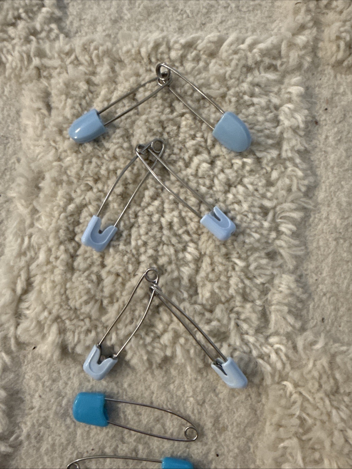 Vtg Cloth Diaper Pins Lot Of 12 Light Teal Blue Safety Pins