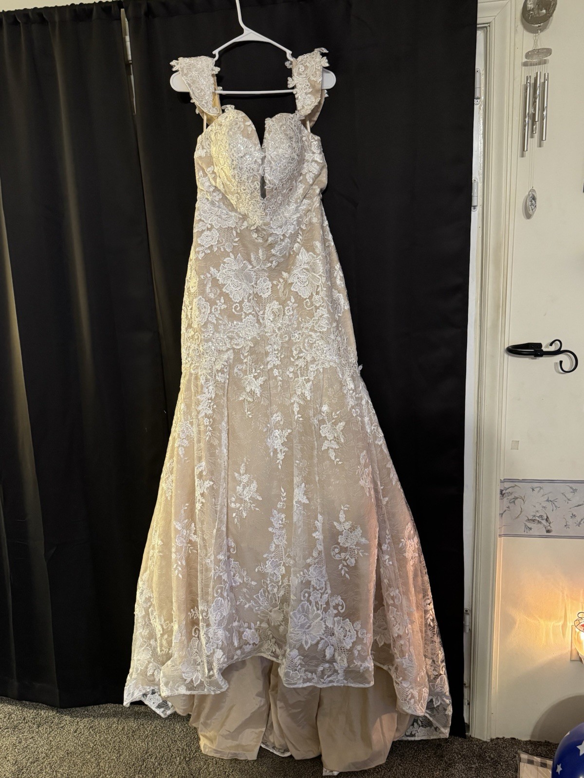 как выглядит QR Fashion Mermaid Off Shoulder Lace Embroidered Wedding Dress White L Train фото