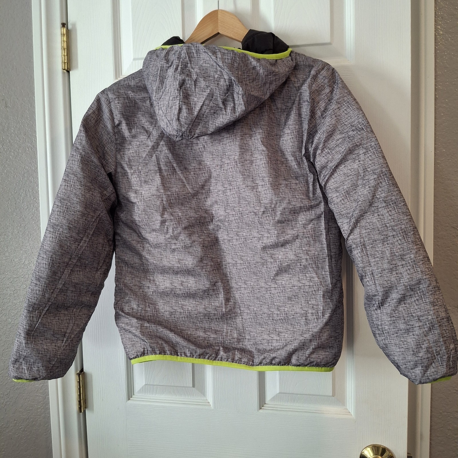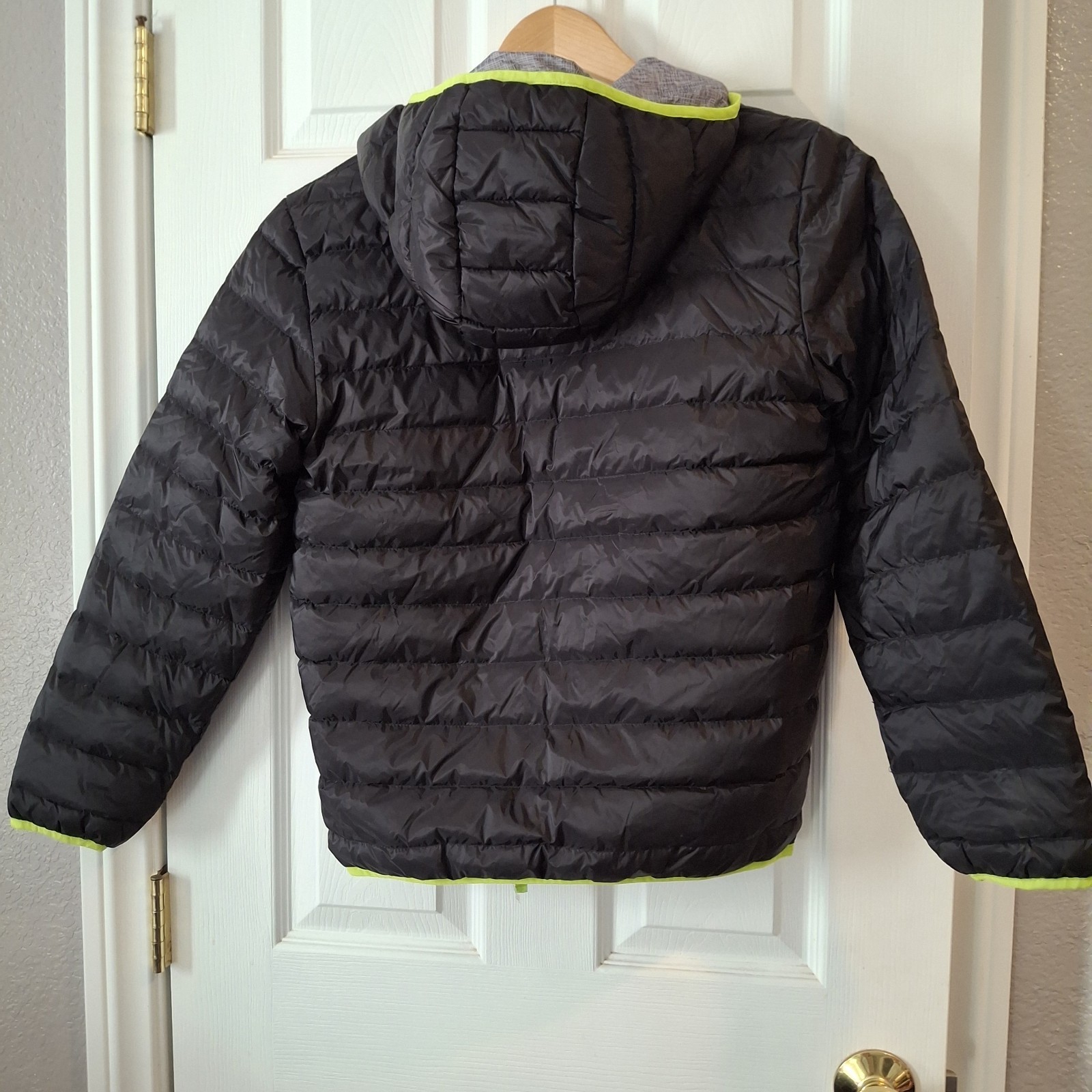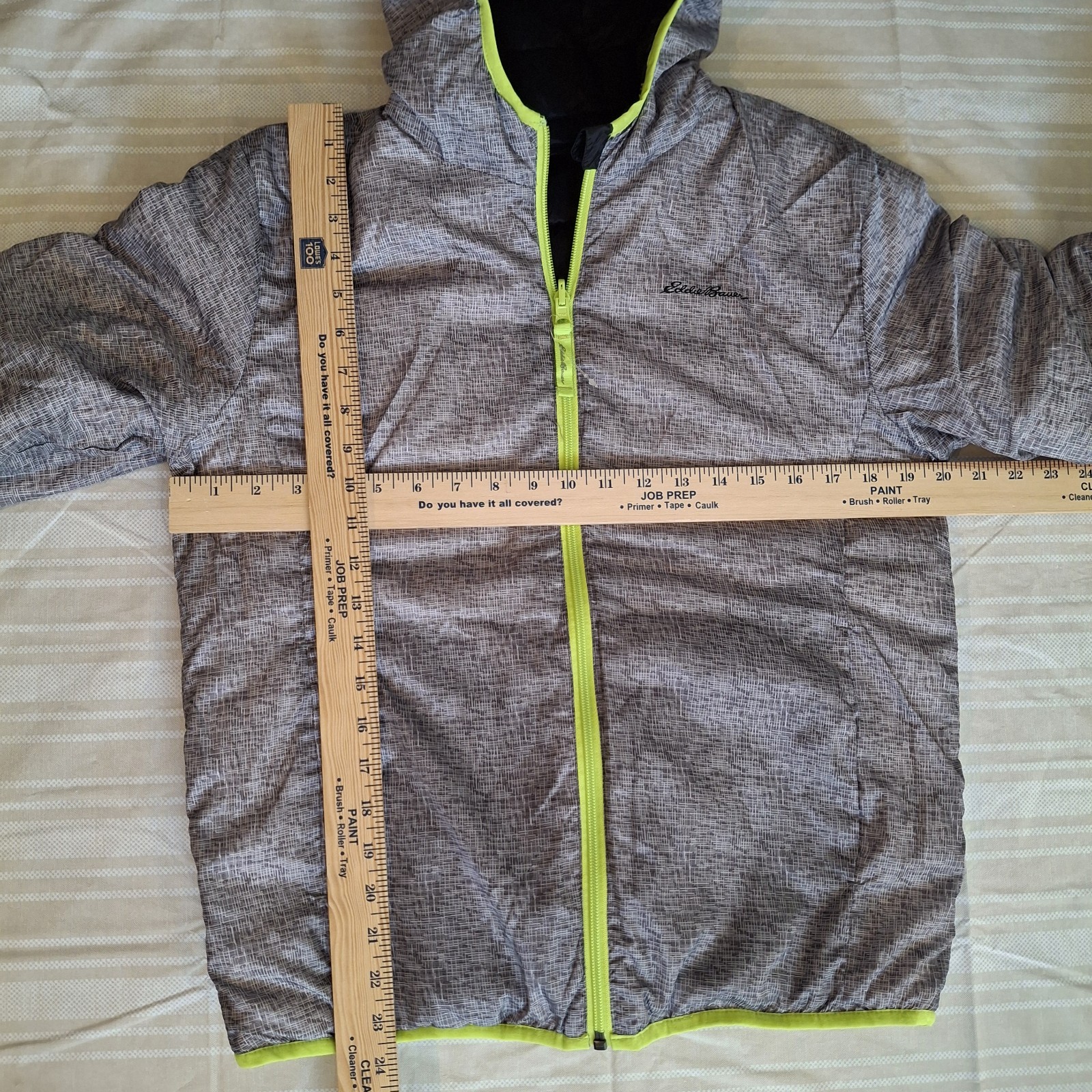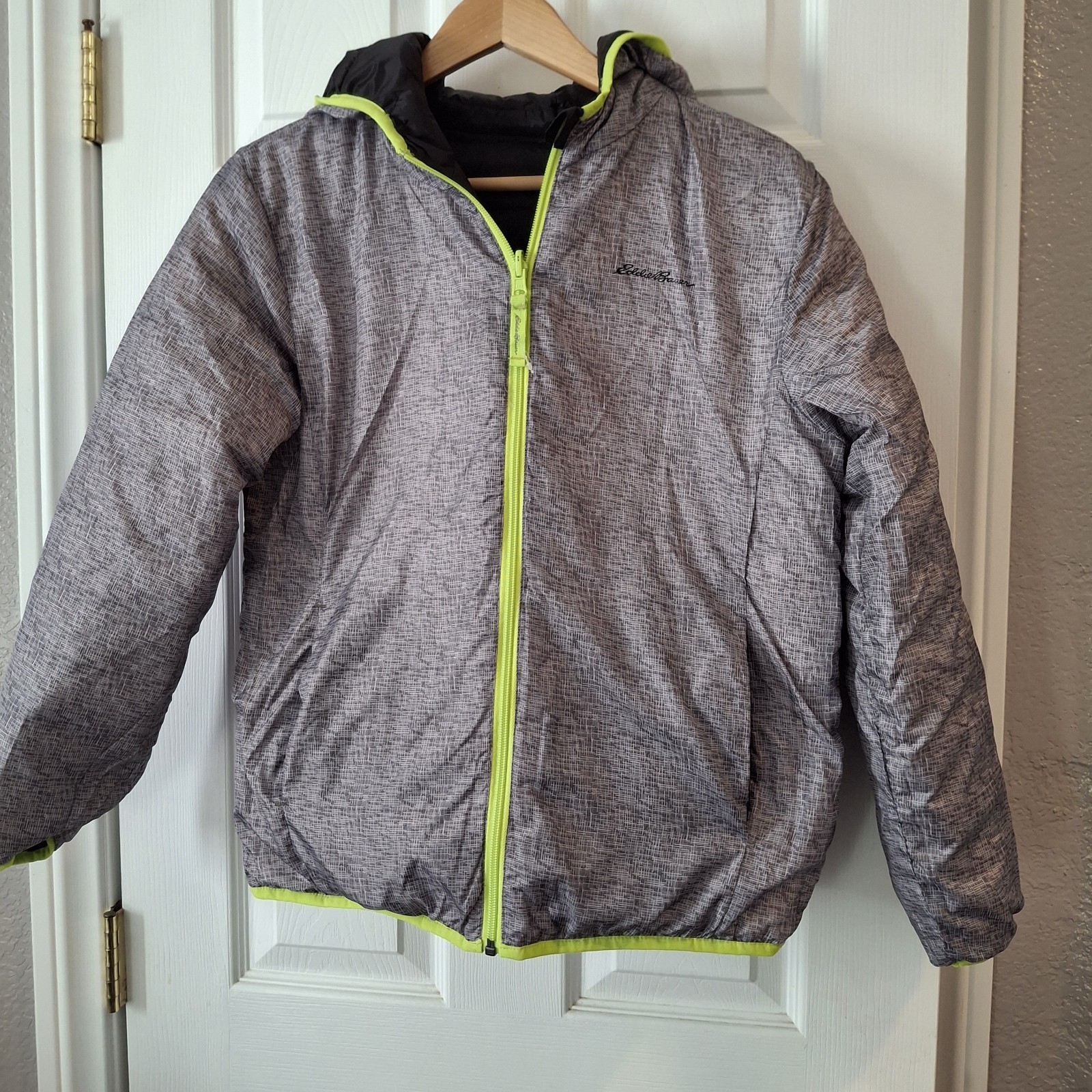 как выглядит Eddie Bauer Unisex Reversible Down Hooded Jacket Kids Sz L 14/16 Warm Neon Trim фото