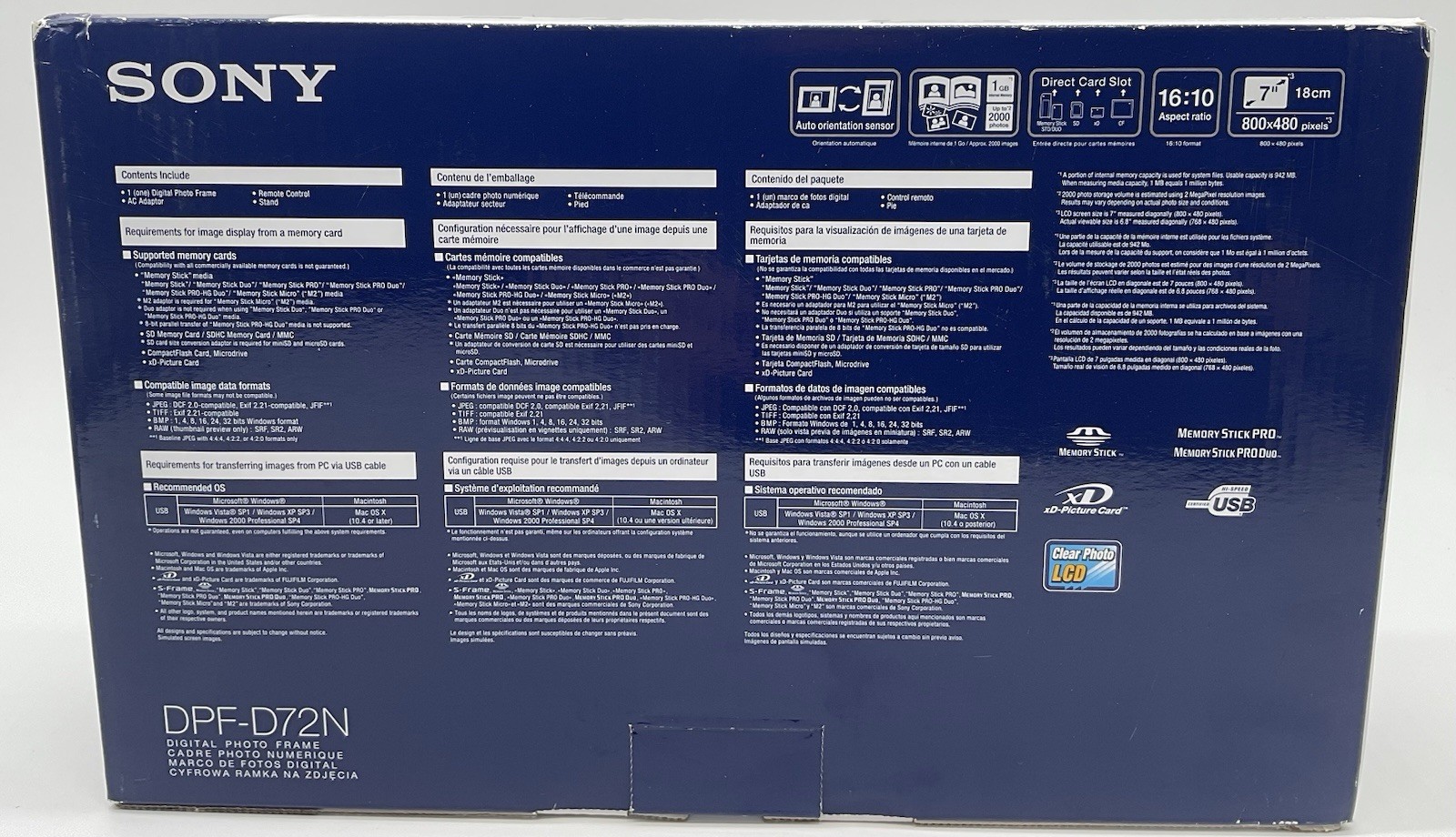 Sony DPF-D72N 7-Inch LCD Digital WVGA 16:10 Photo Frame Black New In Box